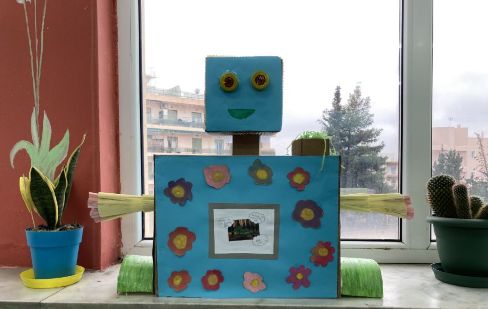 Οι μαθητές επινόησαν κι υλοποίησαν ένα οικολογικό αντικείμενο του μέλλοντος που μπορεί να βελτιώσει τον πλανήτη μας: ένα μικρό ρομποτάκι το οποίο λειτουργεί με ηλεκτρικά πάνελ και μπορεί να πηγαίνει οπουδήποτε για να φυτεύει δέντρα, φυτά, όπου υπάρχει ανάγκη. Στη συνέχεια ετοίμασαν μία μικρή παρουσίαση του αντικειμένου στην γαλλική γλώσσα η οποία βιντεοσκοπήθηκε.