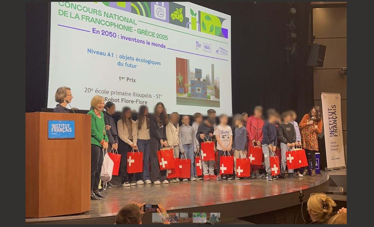 Την πρώτη θέση στον Εθνικό Διαγωνισμό Γαλλοφωνίας έλαβαν οι μαθήτριες κι οι μαθητές της ΣΤ’ τάξης του 20ου Δημοτικού Σχολείου Ηλιούπολης «Ηρώ Κωνσταντοπούλου». Ο διαγωνισμός που διοργανώθηκε από το Γαλλικό Ινστιτούτο Ελλάδας με θέμα «Επινοούμε τον κόσμο του 2050», ήταν μία δράση ευαισθητοποίησης στις αρχές της βιώσιμης ανάπτυξης με πολλή φαντασία, δημιουργικότητα και μια… δόση τρέλας.