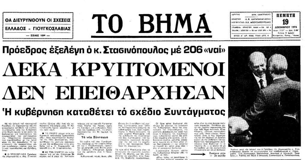 «ΤΟ ΒΗΜΑ», 19.12.1974, Ιστορικό Αρχείο «ΤΟ ΒΗΜΑ» | «ΤΑ ΝΕΑ»