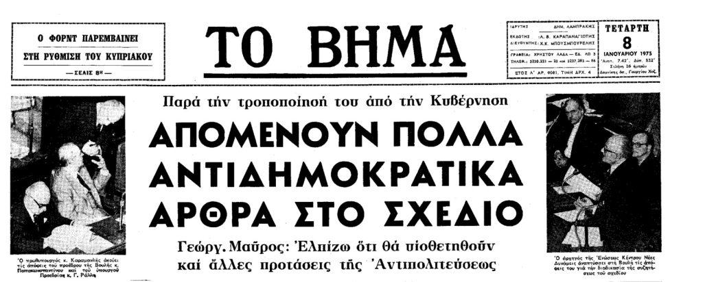 «ΤΟ ΒΗΜΑ», 8.1.1975, Ιστορικό Αρχείο «ΤΟ ΒΗΜΑ» | «ΤΑ ΝΕΑ»