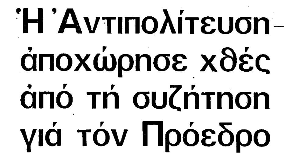 39. «ΤΟ ΒΗΜΑ» της 20ης Ιουνίου 1975 ανέφερε για την έναρξη της θητείας του πρώτου Προέδρου της Ελληνικής Δημοκρατίας: «Δεν υπάρχει αμφιβολία ότι η θητεία του πρόκειται να συνδεθεί με κρίσιμα εσωτερικά και εξωτερικά προβλήματα και θα αποτελέση ως εκ τούτου ιστορικό ορόσημο για τον τόπο. Ο νέος Πρόεδρος είναι εξωπλισμένος με περισσότερες του αναγκαίου εξουσίες. Θα έχη επιτύχει στο έργο του όταν δεν θα κάμη χρήση των εξουσιών αυτών. Του το ευχόμαστε»