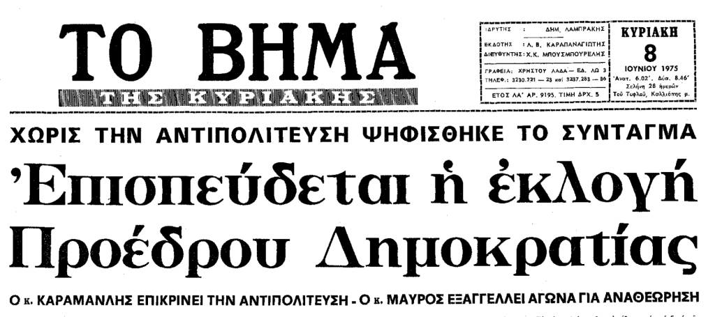 «ΤΟ ΒΗΜΑ», 8.6.1975, Ιστορικό Αρχείο «ΤΟ ΒΗΜΑ» | «ΤΑ ΝΕΑ»