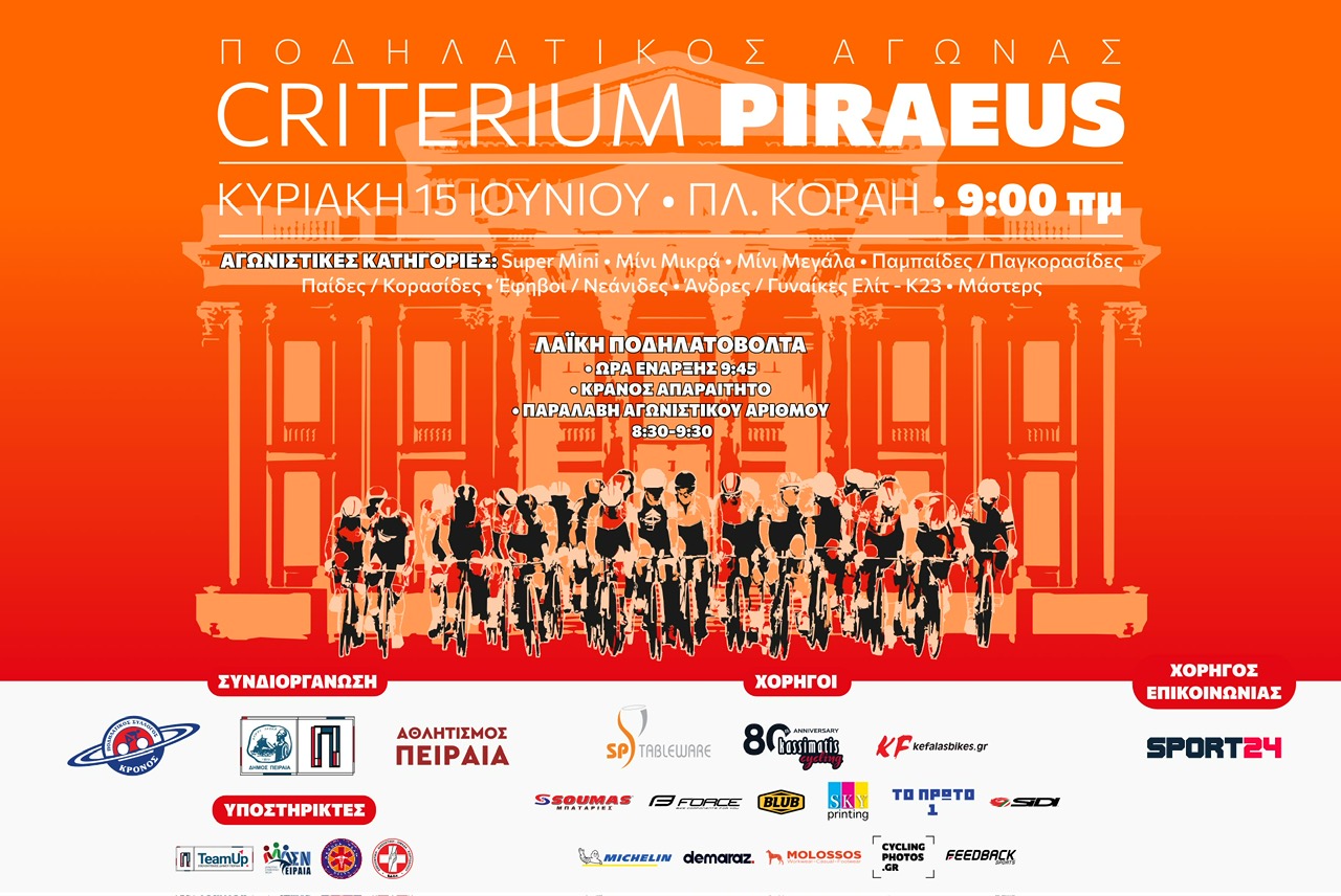 Σε ποδηλατικό κέντρο θα μετατραπεί η πλατεία Κοραή στον Πειραιά, την Κυριακή 15 Ιουνίου, καθώς θα πραγματοποιηθεί για πρώτη φορά στην πόλη, ο ποδηλατικός αγώνας «Criterium Piraeus», προσφέροντας ένα μοναδικό θέαμα για μικρούς και μεγάλους.