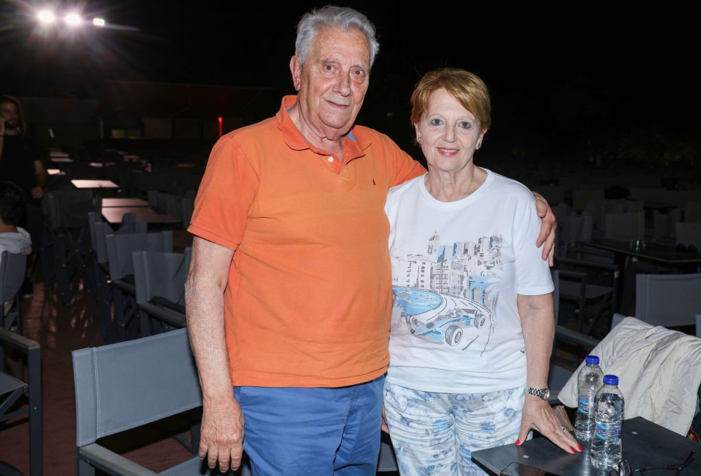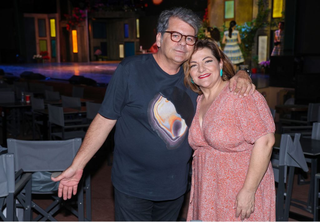 Η Κατερίνα Ζαμπέτα με τον σύζυγό της στο Θέατρο Άλσος, πριν την έναρξη της πρόβας.