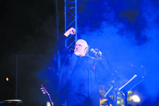Ο Διονύσης Σαββόπουλος το 2019 σε πρόβα στον λόφο της Σάνης, για τη συναυλία-αφιέρωμα στα 50 χρόνια από το Γούντστοκ. Σμίγοντας «παλιές κι αναμμένες τροχιές με το ροκ του μέλλοντός μας».
