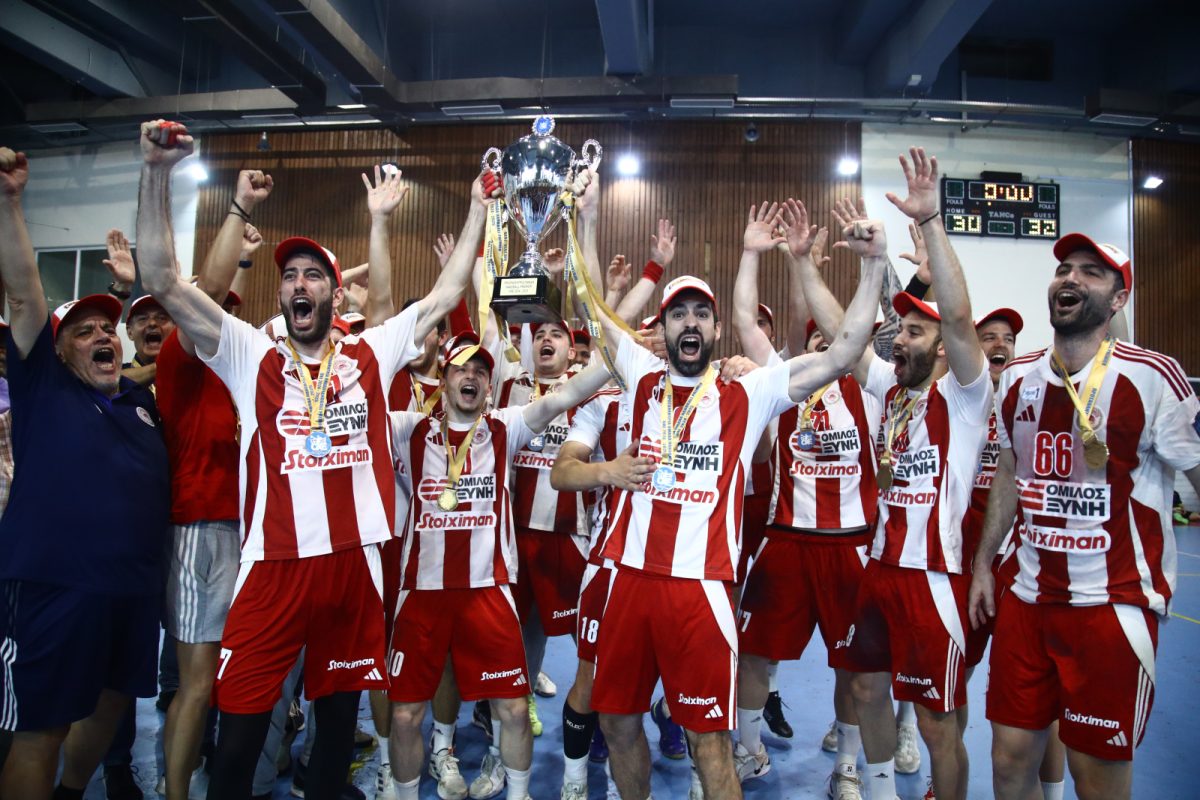 Με εμφάνιση και ψυχή πρωταθλητή ο Ολυμπιακός κατέκτησε τη βαρύτιμη κούπα! Οι «ερυθρόλευκοι» έδειξαν μέταλλο στο -κεκλεισμένων των θυρών, λόγω τιμωρίας, «Γ. Κασιμάτης»- έκαναν και δεύτερο break και επικράτησαν της ΑΕΚ με σκορ 32-30, κατακτώντας το πέμπτο πρωτάθλημα της ιστορίας του στο χάντμπολ ανδρών και δεύτερο σερί.