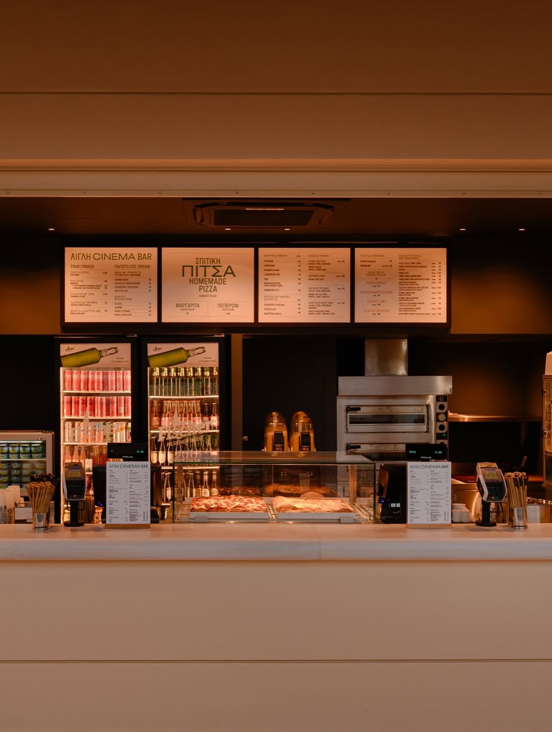 Η καντίνα του είναι ο αθόρυβος πρωταγωνιστής. Η πίτσα που σπάει τη μύτη από την είσοδο της στοάς, το σινεφίλ Σπίλburger, με την υπογραφή τοπ αλυσίδας burger, το ακαταμάχητο, φρέσκο και τραγανό ποπκόρν και τα δυνατά κοκτέιλ –ζητήστε ό,τι θέλετε– δημιουργούν τον τέλειο συνδυασμό για μια βραδιά που τα έχει όλα: άνεση, γεύση και ατμόσφαιρα που δεν χορταίνεις. Στα συν, οι ιδανικές αποστάσεις μεταξύ των καθισμάτων και οι υποδομές για ΑμεΑ και παιδιά.