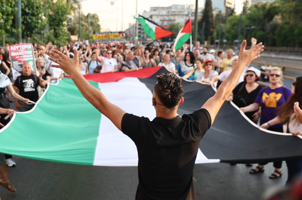 Χιλιάδες διαδηλωτές βρέθηκαν στο Σύνταγμα κρατώντας πανό στα χέρια και παλαιστινιακές σημαίες, ενώ το παρών στις συγκεντρώσεις έδωσαν και πολιτικοί αρχηγοί.