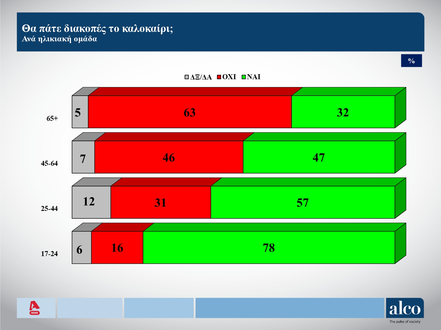 Την ίδια ώρα ιδιαίτερα ενδιαφέρον παρουσιάζουν τι θα πράξουν οι πολίτες ανά ηλικία. Όπως μπορούμε εύκολα να παρατηρήσουμε οι μεγαλύτεροι σε ηλικία στερούνται το δικαίωμα στις διακοπές.