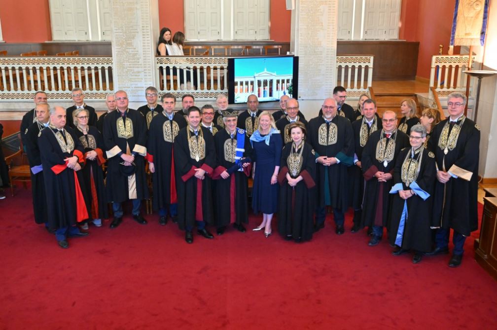 Ο Πρύτανης του Πανεπιστημίου Αθηνών, καθηγητής Γεράσιμος Σιάσος, τόνισε: «Αποτελεί ιδιαίτερη τιμή για το Εθνικό και Καποδιστριακό Πανεπιστήμιο Αθηνών η επίσκεψη της Προέδρου του Πανεπιστημίου Yale, Καθηγήτριας Maurie McInnis, και του τέως Προέδρου, Καθηγητή Peter Salovey, στο Ίδρυμά μας. Η παρουσία τους στην Αθήνα, και ειδικότερα στο Πανεπιστήμιο Αθηνών, είναι συμβολική και ουσιαστική• αναδεικνύει τις δυνατότητες διεθνούς συνεργασίας και την κοινή μας δέσμευση στην αριστεία, την έρευνα και την προαγωγή της γνώσης χωρίς σύνορα. Η αναγόρευση του Καθηγητή Salovey – ενός πρωτοπόρου στον τομέα της συναισθηματικής νοημοσύνης και διακεκριμένου ακαδημαϊκού – σε Επίτιμο Διδάκτορα της Ιατρικής Σχολής αποτελεί αναγνώριση του εξαιρετικού του έργου και ταυτόχρονα ευκαιρία για περαιτέρω προσέγγιση των δύο Ιδρυμάτων. Το Πανεπιστήμιο Αθηνών συνεχίζει δυναμικά την εξωστρεφή του πορεία, επιδιώκοντας στρατηγικές συμπράξεις με κορυφαία Πανεπιστήμια του κόσμου. Η σημερινή ημέρα αποτελεί σταθμό σ’ αυτή την πορεία και ένα ακόμα βήμα για ένα Πανεπιστήμιο ανοικτό, σύγχρονο και διεθνώς διασυνδεδεμένο».