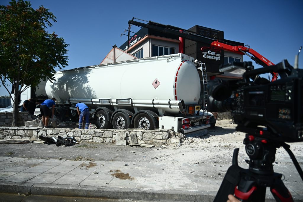 Βυτιοφόρο που τα ξημερώματα συγκρούστηκε με ΙΧ ,στο Μενίδι προκάλεσε ζημιές σε ιχθυοπωλείο, γκρέμισε κολώνα ηλεκτροφωτισμού, παρέσυρε στέγαστρο και κατέληξε σε μάντρα αυτοκινήτων, με πρόσκρουση που «σαν από θαύμα δεν προκάλεσε διαρροή καυσίμων», όπως είπαν αυτόπτες μάrτυρες στο ΕΡΤΝews.
