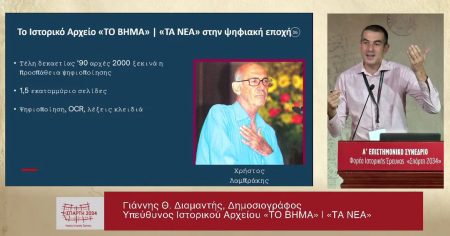 Την πρώτη ημέρα των εργασιών, στη συνεδρία με τίτλο «Αρχεία και ΜΜΕ», παρουσιάστηκε η εισήγηση: «Το Ιστορικό Αρχείο των εφημερίδων “ΤΟ ΒΗΜΑ” και “ΤΑ ΝΕΑ” στην εποχή του ψηφιακού κόσμου και της τεχνητής νοημοσύνης».