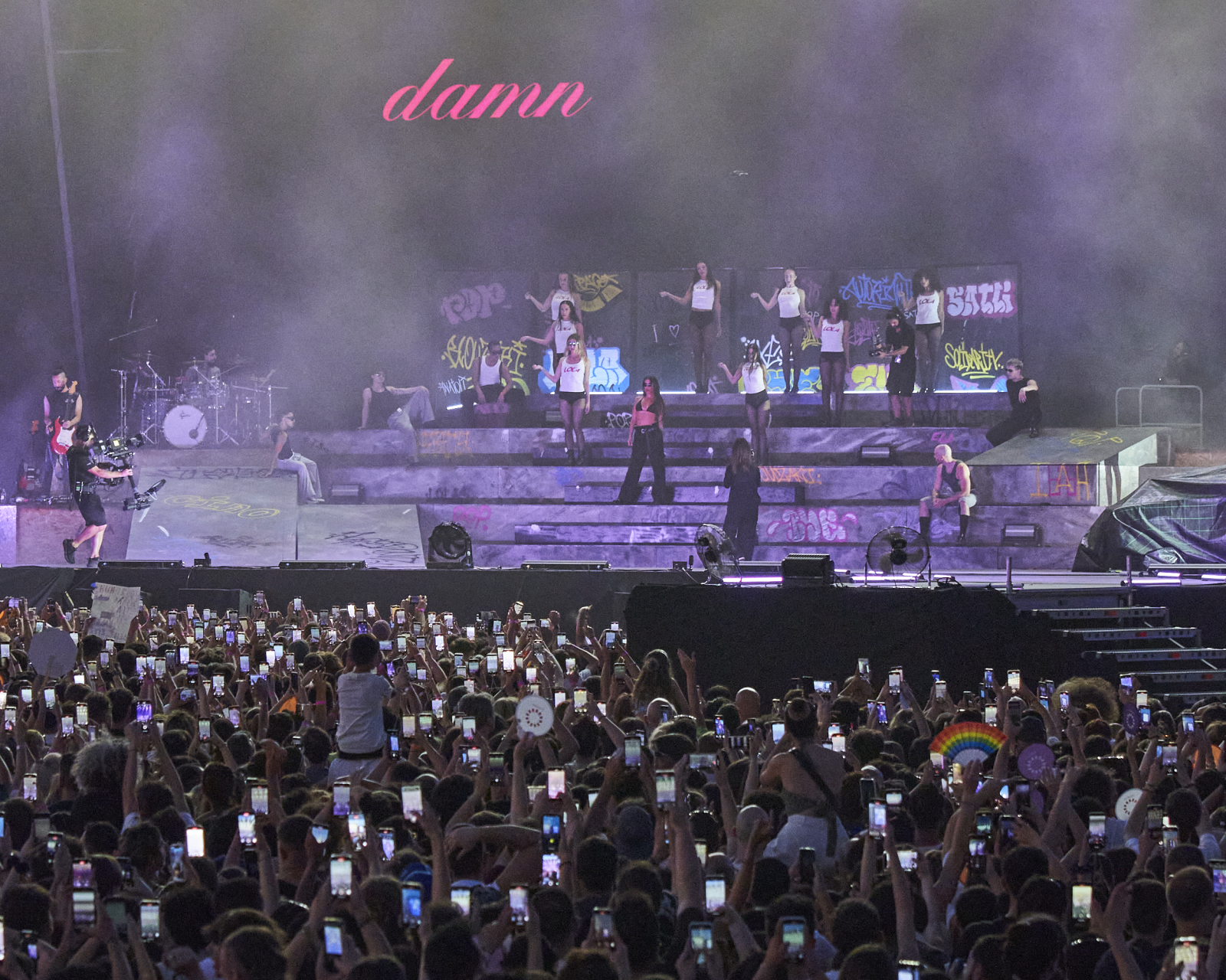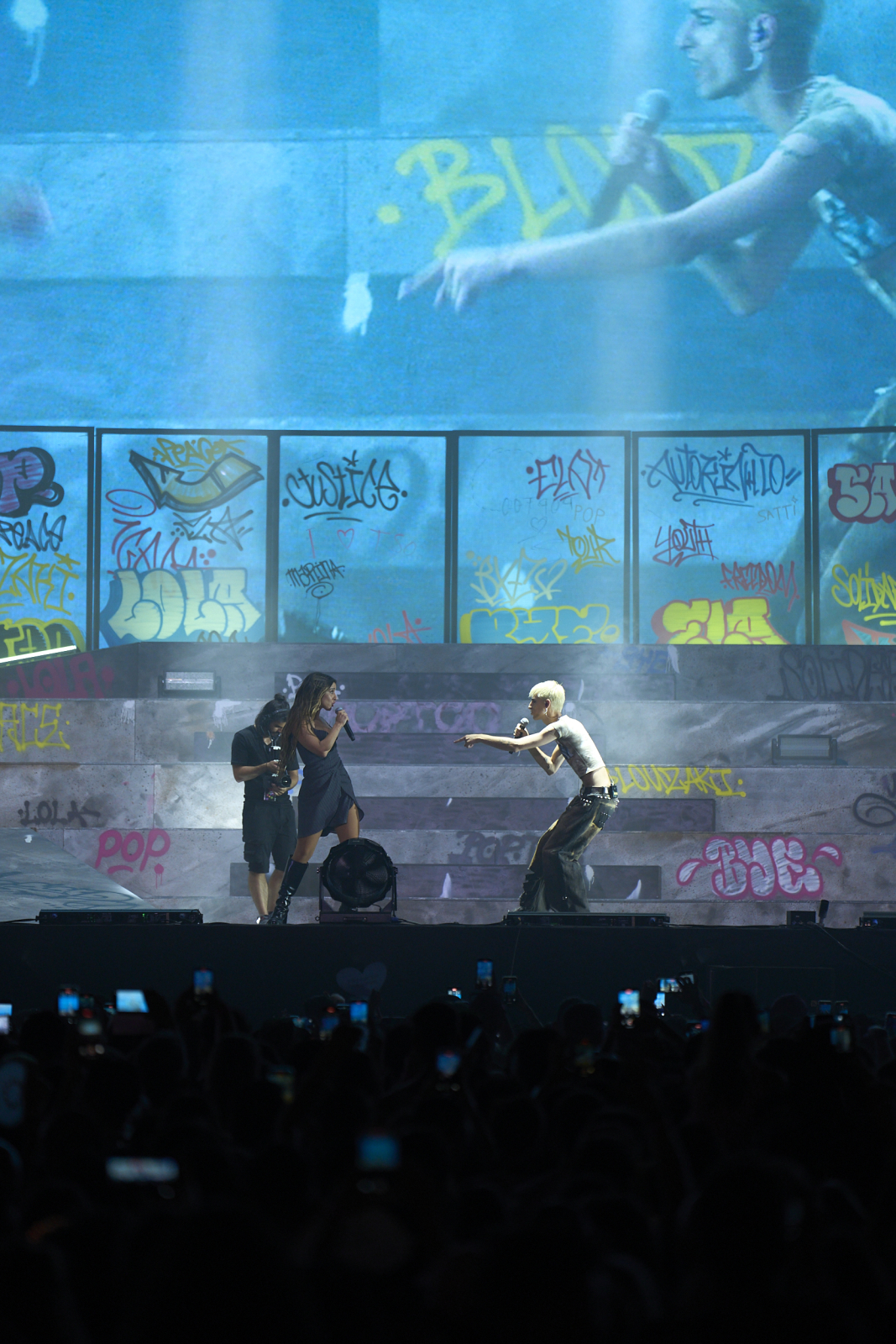 Είδαμε λοιπόν και πάλι ένα σόου φτιαγμένο στα πρότυπα των περιοδειών του εξωτερικού με πολλές χορογραφίες και εντυπωσιακό σκηνικό (μια παραπομπή σε πίστα σκέιτ με γκράφιτι και τάγκινγκ, ακόμη ωστόσο και αυτοκίνητο υπήρχε στο stage).