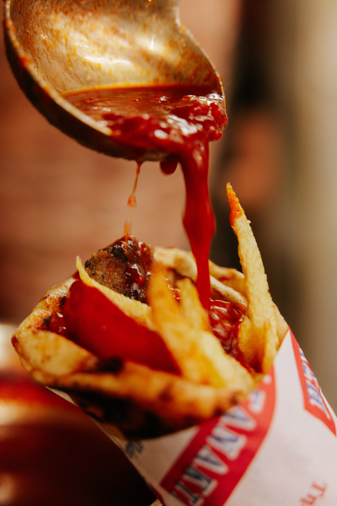 Ο Βασίλης Μπούνας μας τύλιξε ένα περιποιημένο μπιφτέκι με φρεσκοκομμένη ντομάτα, κρεμμύδι και μπόλικη πάπρικα στην Αγανάκτηση. Φωτό: Βασίλης Πολυχρονάκης