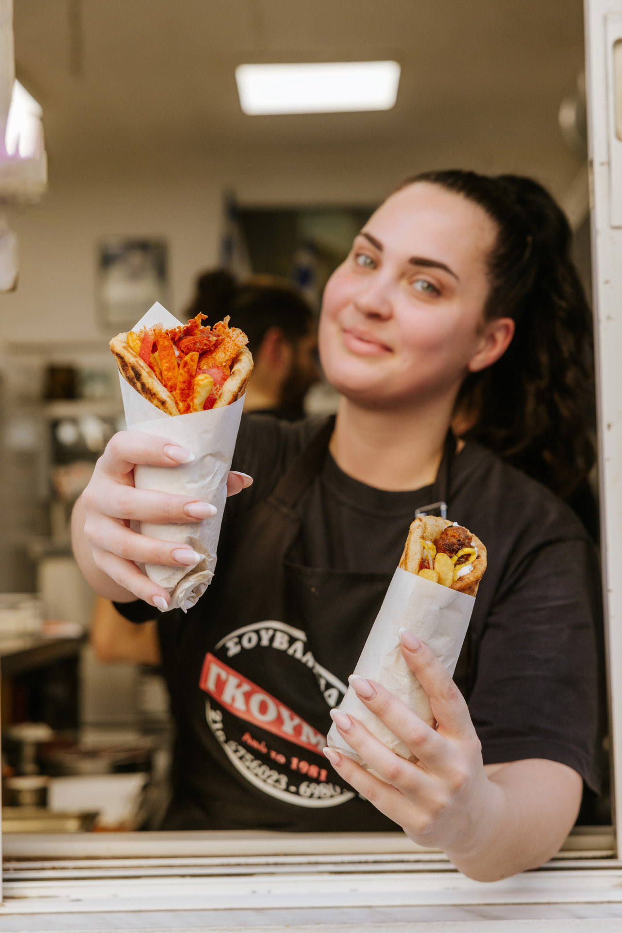 Η Καλλιόπη Ζούλα ανήκει στη νέα γενιά της οικογένειας Γκούμα με τη μεγάλη ιστορία στο ποιοτικό σουβλάκι. Φωτό: Βασίλης Πολυχρονάκης