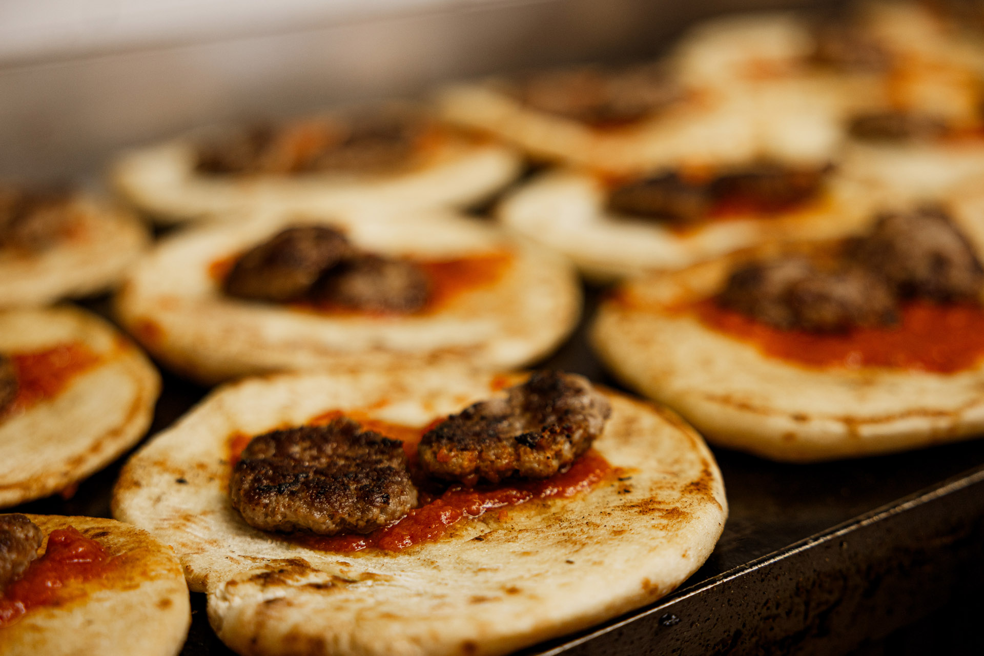Τα θεϊκά μπιφτεκάκια του Γιώργου ξαπλώνουν πάνω στη σάλτσα τους. Φωτό: Βασίλης Πολυχρονάκης