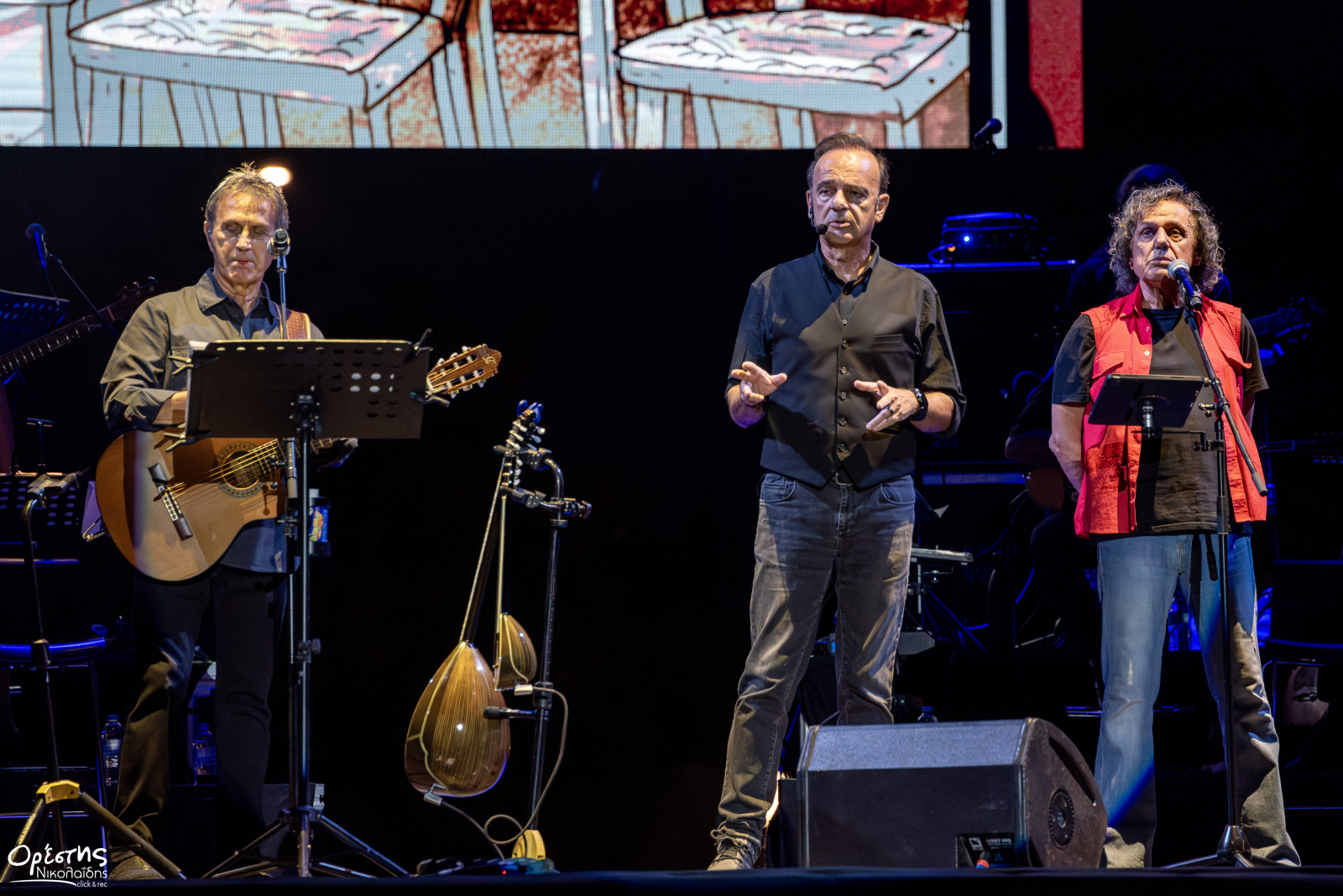 Τι ωραία που ήταν όταν άρχισε ξαφνικά να φυσάει την ώρα που έλεγαν μαζί το «Μια θάλασσα μικρή» — σχεδόν κινηματογραφική έγινε η ατμόσφαιρα. Στο τέλος αυτές οι φωνές που συντροφεύουν τη ζωή μας εδώ και δεκαετίες το είχαν κάνει το θαύμα τους.