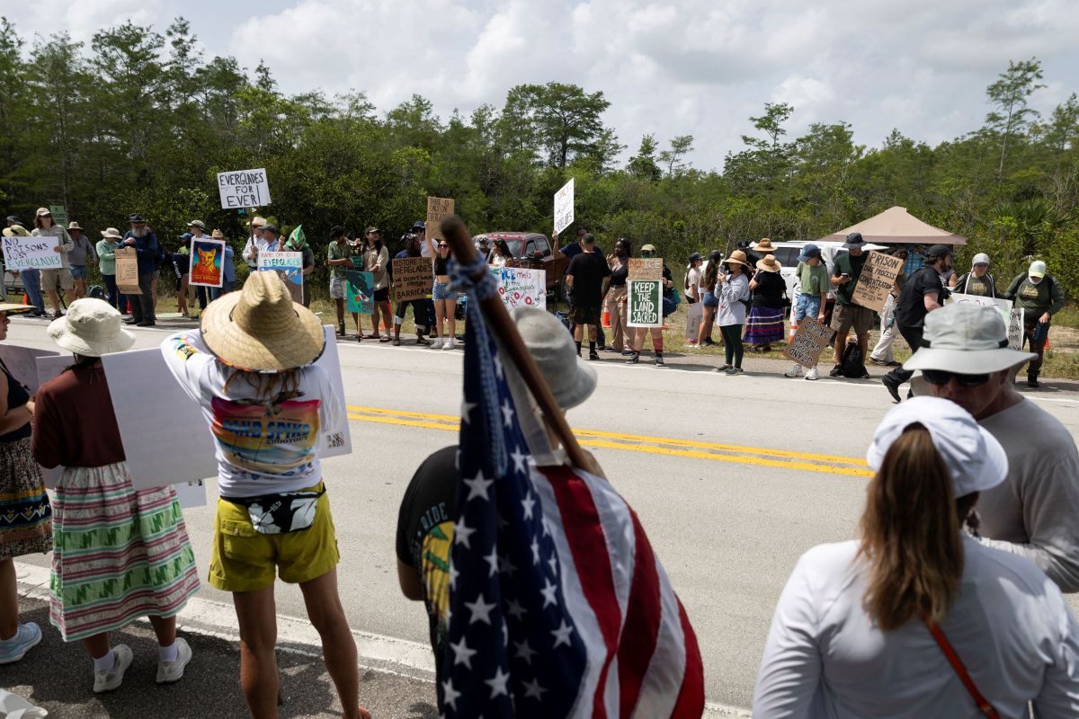 Διαδηλωτές συγκεντρώθηκαν κατά μήκος του αυτοκινητόδρομου που διασχίζει το Εβεργκλέιντς το Σάββατο, μεταξύ αυτών ακτιβιστές και ιθαγενείς Αμερικανοί που υπερασπίζονται τις προγονικές τους πατρίδες. Άλλοι διαμαρτυρήθηκαν για τη μεταχείριση των μεταναστών.