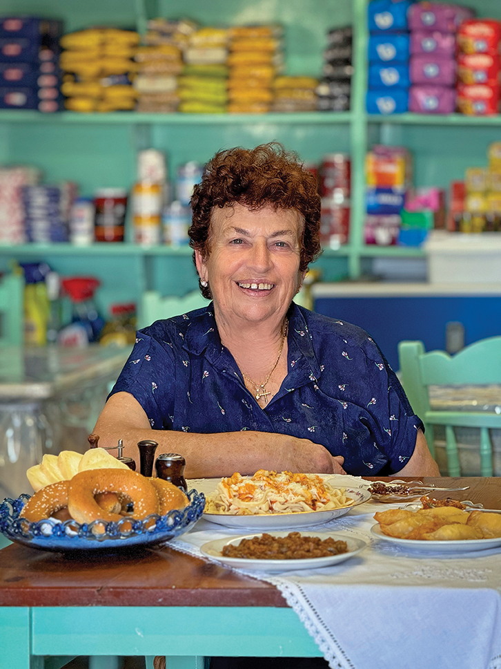 Η Ειρήνη Ψαρομηλίγκου-Παπαδοπούλου με τις νοστιμιές και το ζεστό χαμόγελό της. Φωτό: Ανάργυρος Δεκαβάλλας