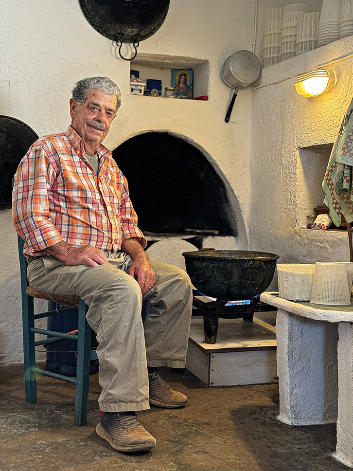 Ο Γιώργος Καρυστιναίος και το μικρό αλλά θαυματουργό τυροκομείο του. Φωτό: Ανάργυρος Δεκαβάλλας