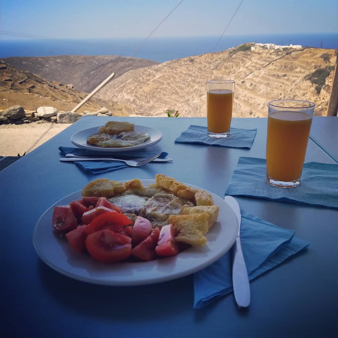 Μια ταβέρνα με ντόπια πιάτα που δεν γίνεται να μην επισκεφθείτε όταν φτάσετε στο νησί. Το πρωί σερβίρει παραδοσιακό πρωινό με θέα, ενώ στη συνέχεια τη σκυτάλη παίρνουν οι κατσαρόλες, τα τηγάνια και η σχάρα. Κοκκινιστό κατσικάκι, από εκείνο που ονειρεύεστε πάντα, καλασούνες, ντόπια κρέατα πρώτης ποιότητας, κουνέλι με ματσάτα και ψάρια που φέρνει καθημερινά ο ιδιοκτήτης με το καΐκι του.