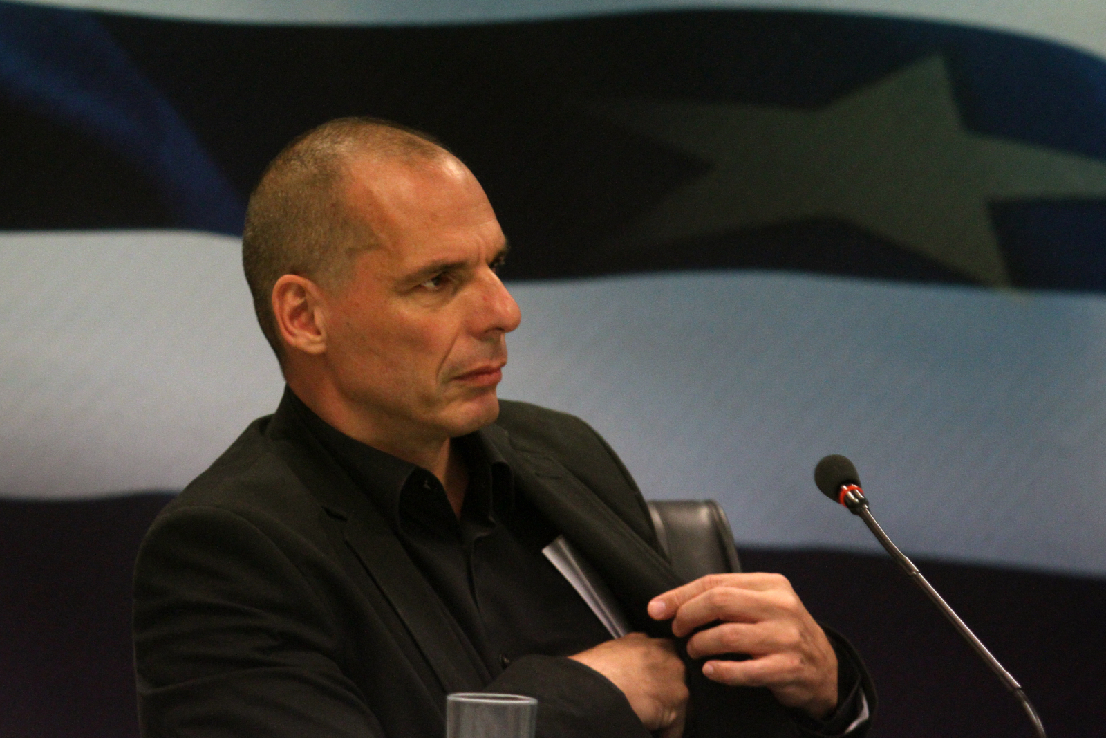 Ο απερχόμενος υπουργός Οικονομικών Γιάνης Βαρουφάκης, κάνει δηλώσεις κατά τη διάρκεια της τελετής παράδοσης παραλαβής καθηκόντων, τη Δευτέρα 06 Ιουλίου 2015, στο Υπουργείο. ΑΠΕ-ΜΠΕ/ΑΛΕΞΑΝΔΡΟΣ ΒΛΑΧΟΣ