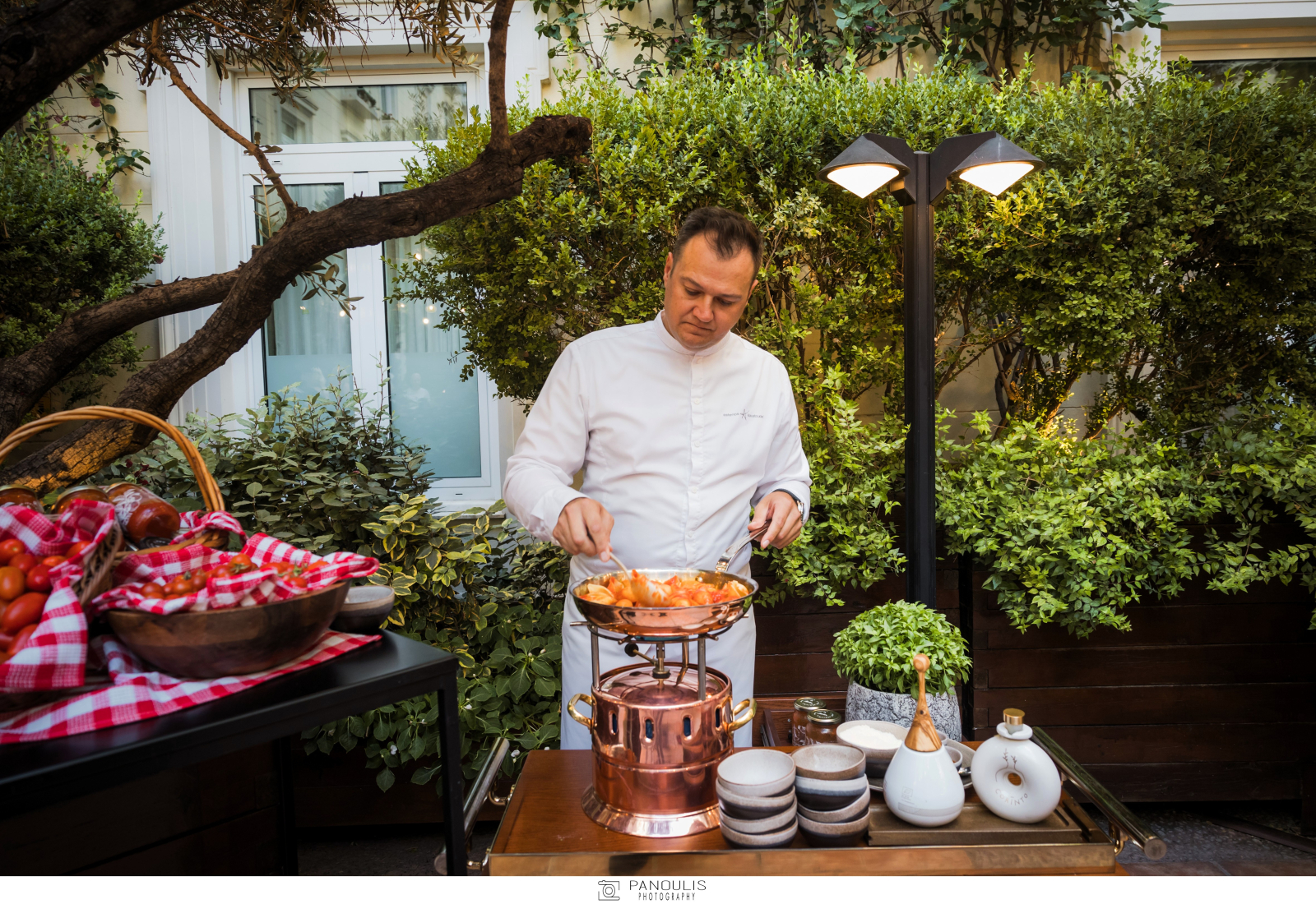 Το σκηνικό στον πρώτο όροφο του ξενοδοχείου, στο αίθριο του Alexander’s Lounge, στήνεται έτσι ώστε να θυμίζει λόφο της Τοσκάνης. Εκεί, στο Il Giardino Segreto, ο σεφ διάλεξε για πρωταγωνίστρια φέτος την «ταπεινή» –αλλά αδιαμφισβήτητα αρχοντική– ντομάτα, η οποία γίνεται αφορμή για ένα γευστικό αφιέρωμα και αφετηρία για ένα πιο πράσινο μέλλον. Κι αυτό γιατί ο Αστέριος δεν έμεινε μόνο στη δημιουργία συνταγών, αλλά πήγε ένα βήμα παραπέρα: αποφάσισε να καλλιεργήσει τις δικές του ντομάτες αναζητώντας σπάνιες ποικιλίες και δίνοντας έμφαση στην ποιότητα, στη γεύση αλλά και στη βιωσιμότητα.