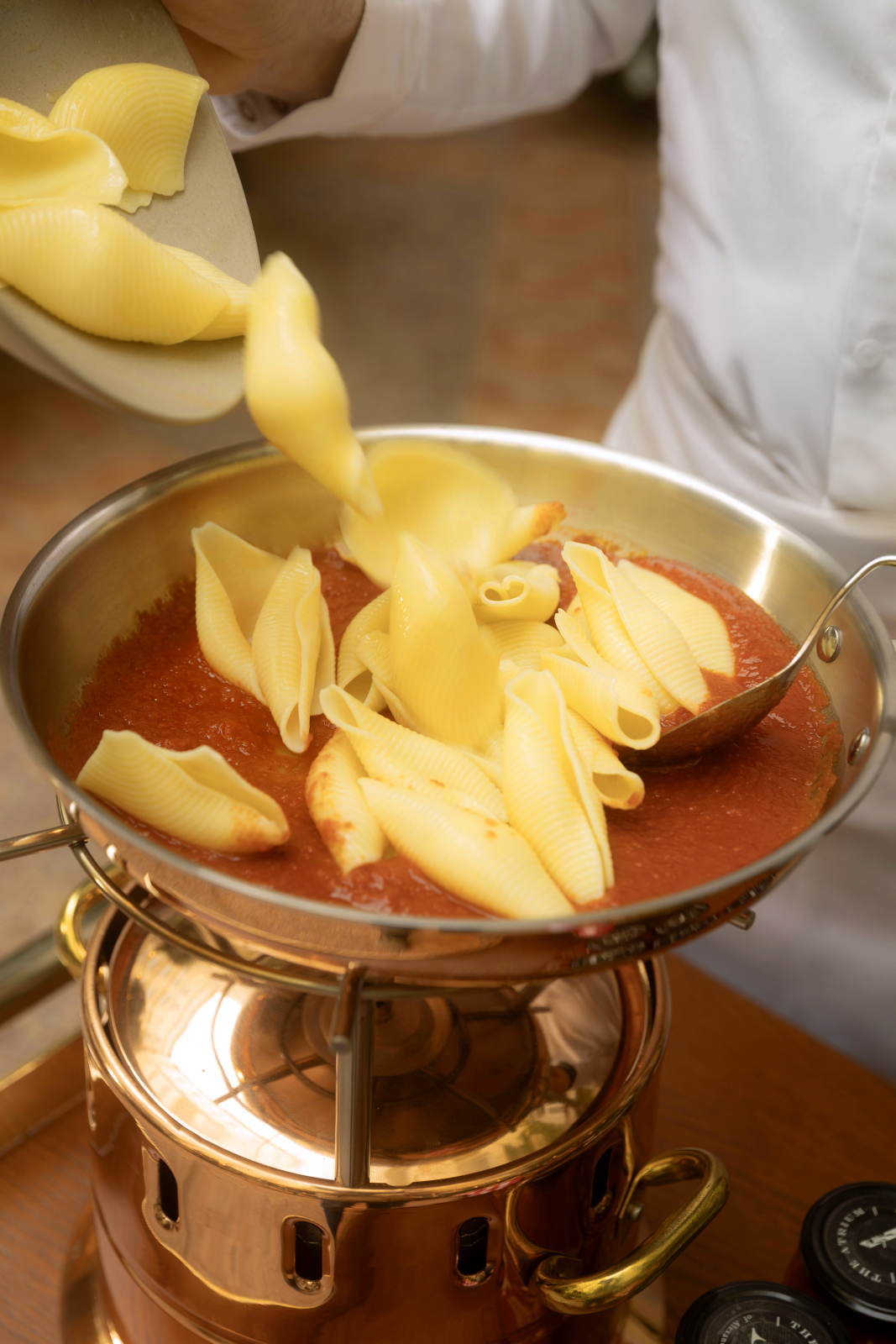 - Βράζουμε τα κοχύλια σε άφθονο νερό που κοχλάζει για 2-3 λεπτά λιγότερο από το χρόνο που αναγράφει η συσκευασία τους. Με τη βοήθεια μιας τρυπητής κουτάλας, τα μεταφέρουμε στο σκεύος με τη σάλτσα. Προσθέτουμε τα φύλλα βασιλικού και μαγειρεύουμε ανακατεύοντας απαλά για λίγα λεπτά ακόμα και συμπληρώνοντας, αν χρειάζεται, λίγο από το ζεστό νερό όπου έβρασαν τα ζυμαρικά.