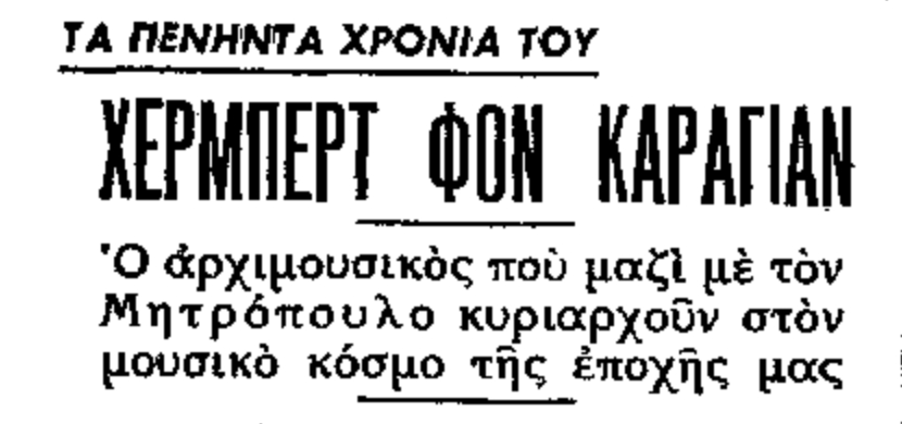 »Η ελληνική καταγωγή του Κάραγιαν ερευνήθηκε από τα χρόνια του μεσοπολέμου, όταν για πρώτη φορά άρχισε να ακούγεται το όνομά του. Και από πολύ ενωρίς έγραψε στο “Bήμα” για τον Κάραγιαν ο Μιχάλης Κυριακίδης, ένας από τους ελάχιστους έλληνες δημοσιογράφους που παρακολούθησαν από πολύ νωρίς τον μαέστρο στο κάθε του βήμα.