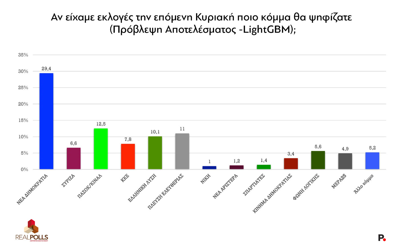 Το ΠαΣοΚ σταθεροποιείται με μικρή πτωτική τάση (-0,5% από τον Ιούνιο) στο 12,5% και περνάει καθαρά δεύτερο, αφού η Πλεύση Ελευθερίας χάνει 1,3 μονάδες και βρίσκεται πλέον στο 11%, από το 12,3% του Ιουνίου. Η Ελληνική Λύση συνεχίζει να ενισχύεται και βρίσκεται πλέον οριακά πάνω από το 10% (από 8,4% του Ιουνίου).