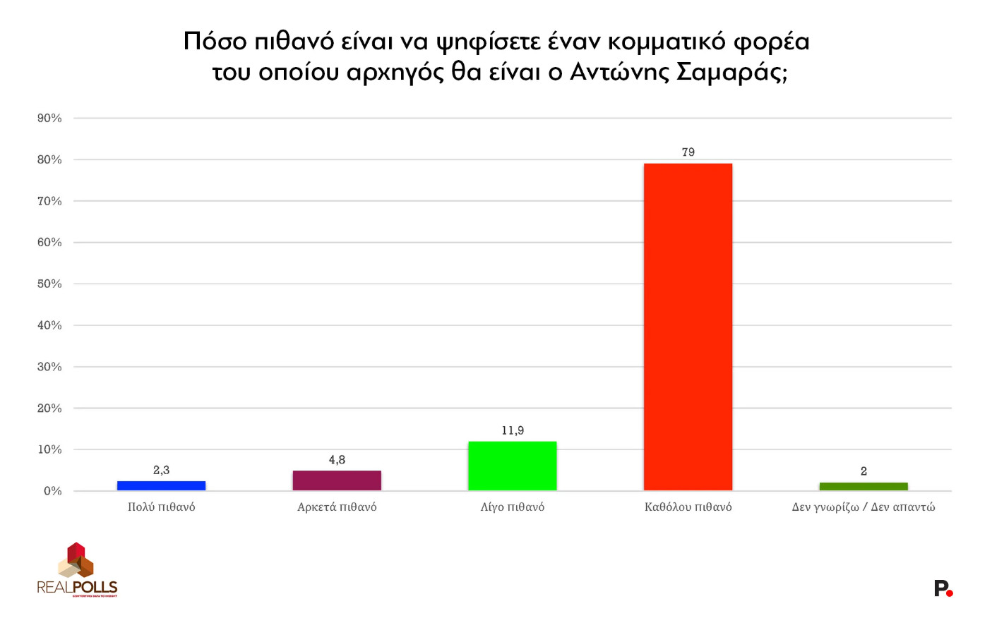 Η δυνητική ψήφος για τα δύο αυτά, υποθετικά προς το παρόν, κόμματα με βάση το ερώτημα πόσο πιθανό είναι να ψηφίσει κανείς ένα από τα δύο, καταγράφεται για τον μεν Αλέξη Τσίπρα στο 18,1% (αθροιστικά «πολύ πιθανό» και «αρκετά πιθανό»), ενώ για τον Α. Σαμαρά μόλις στο 7,1%.