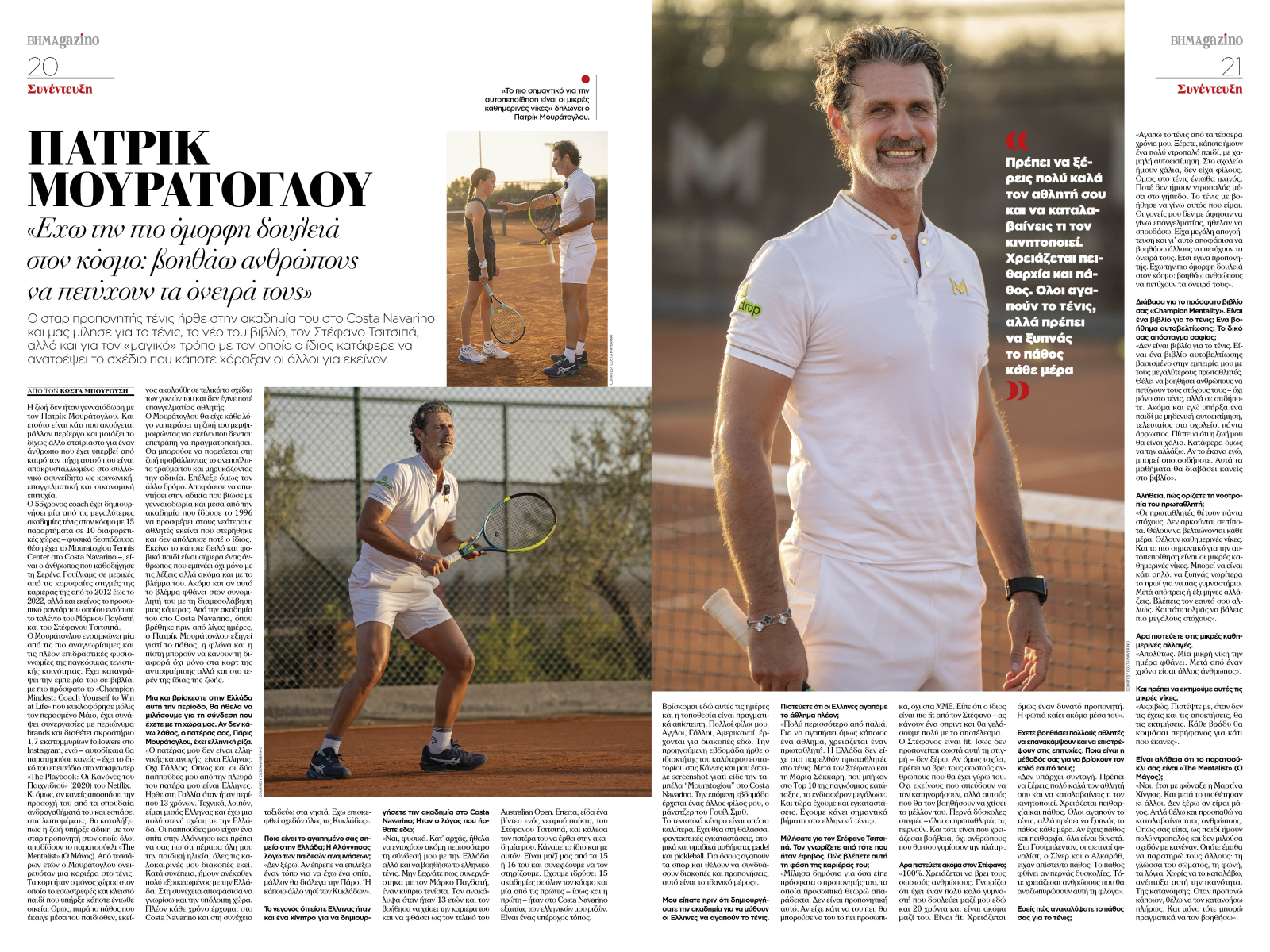 Ακόμα στο BHMAGAZINO ο Πάτρικ Μουράτογλου, ο σταρ προπονητής του τένις που βρέθηκε στην ακαδημία του στο εντυπωσιακό Costa Navarino μιλάει για το τένις, το νέο του βιβλίο και τον Στέφανο Τσιτσιπά.