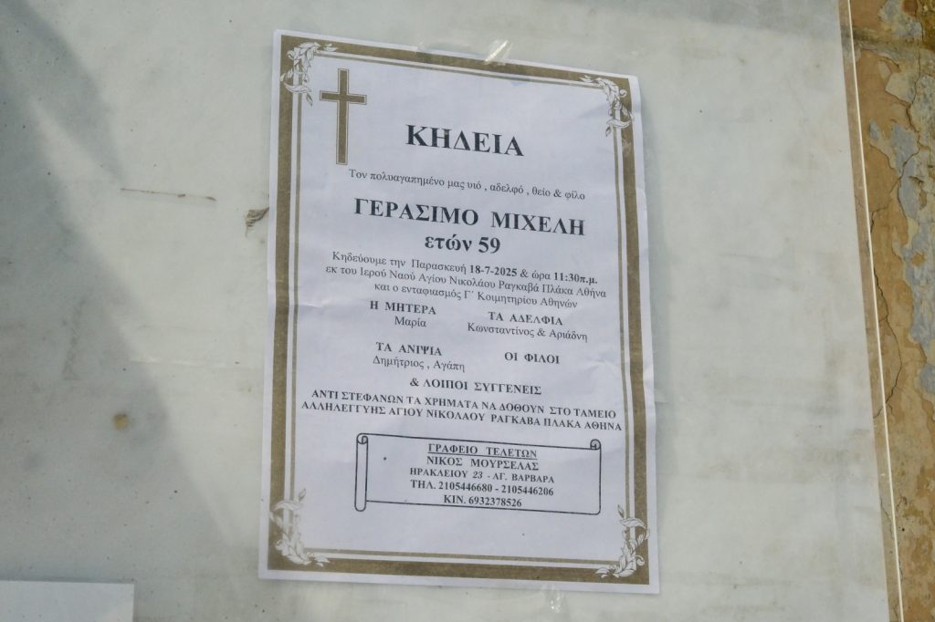 Την Παρασκευή 18 Ιουλίου, συγγενείς, φίλοι και συνάδελφοι βρέθηκαν στο ναό Αγίου Νικολάου Ραγκαβά στην Πλάκα για να πουν το τελευταίο «Αντίο» στον καλλιτέχνη.
