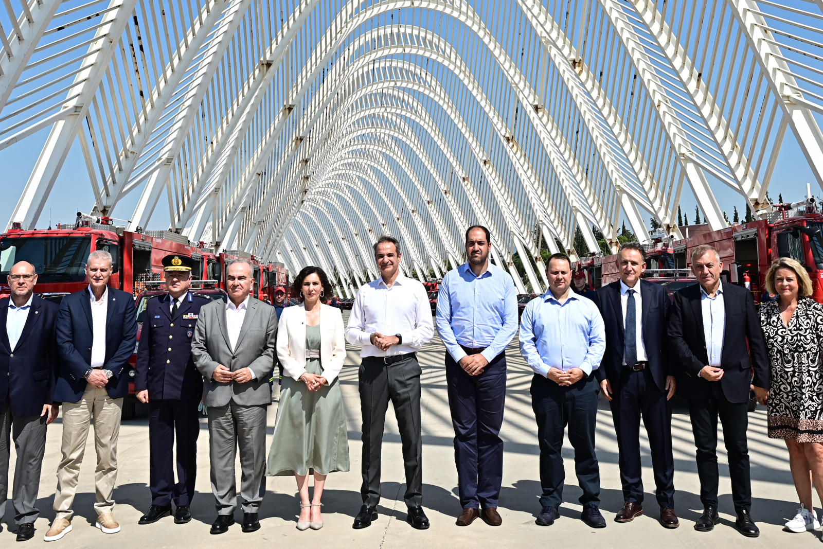 Στην τελετή παράδοσης 164 νέων οχημάτων στο Πυροσβεστικό Σώμα παρέστη το πρωί ο Πρωθυπουργός Κυριάκος Μητσοτάκης, παρουσία της Ευρωπαίας Επιτρόπου Ισότητας, Ετοιμότητας και Διαχείρισης Κρίσεων Hadja Lahbib, στο ΟΑΚΑ.