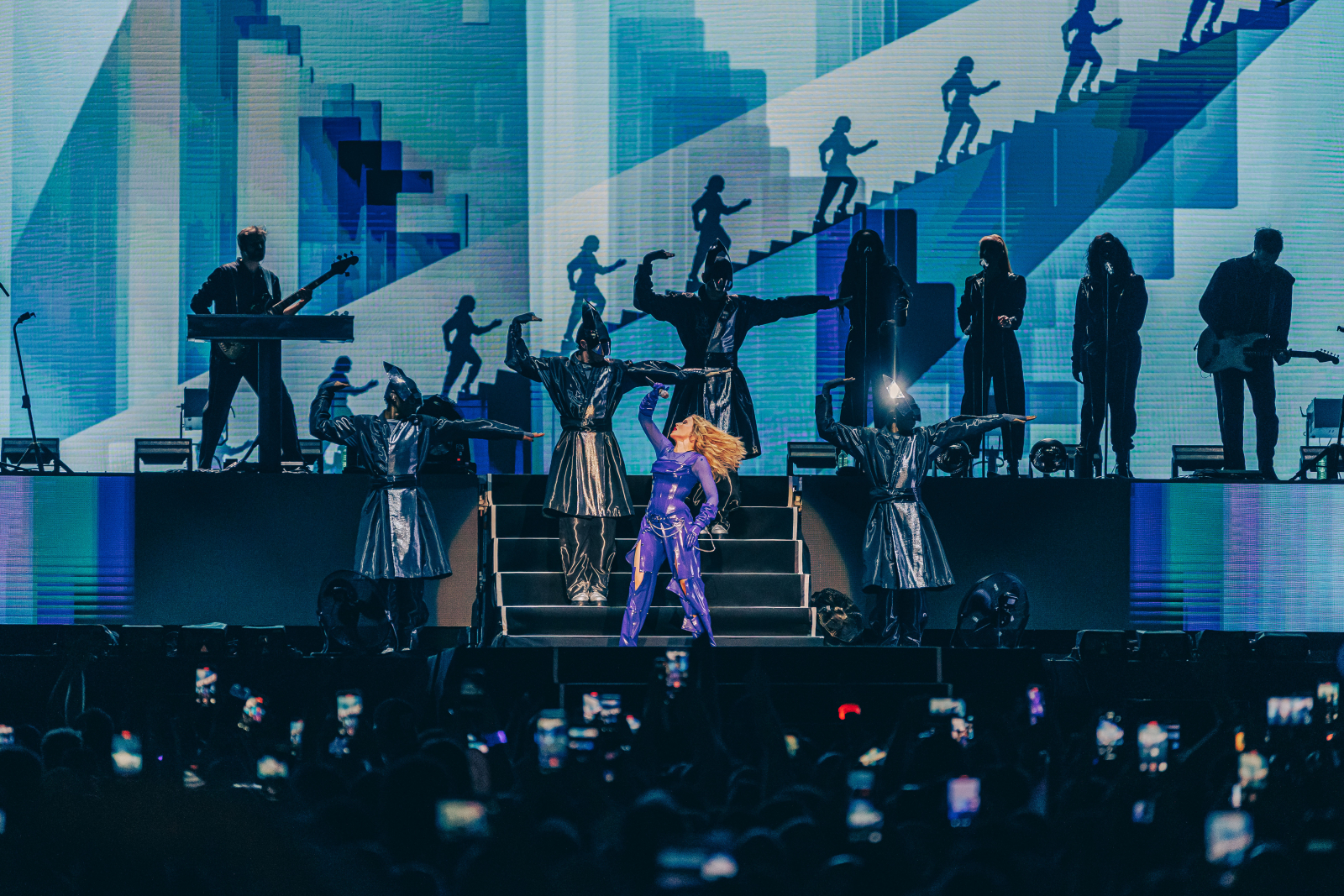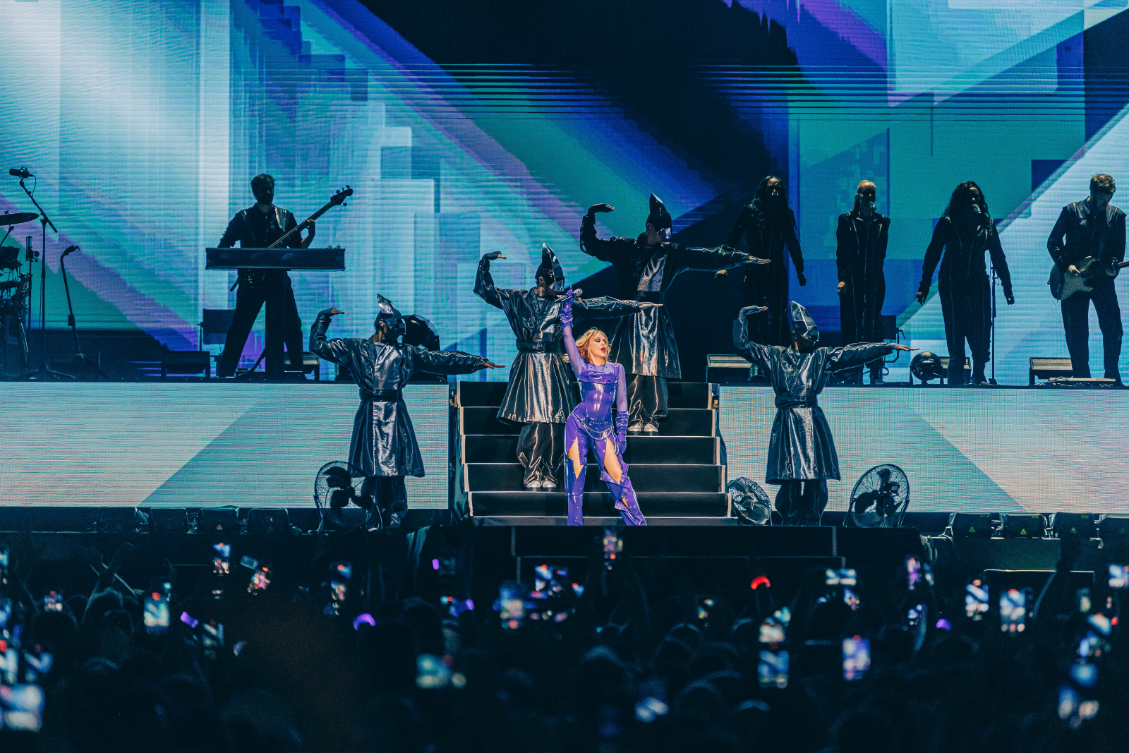 Η Kylie Minogue ιδρώνει τη φανέλα, όχι μόνο κυριολεκτικά όπως χθες): 17 studio albums και 16 διεθνείς περιοδείες σε 37 χρόνια, χωρίς καν να υπολογίζουμε τις άλλες επιχειρηματικές της δραστηριότητες (ευχάριστη έκπληξη ότι το κρασί με το όνομα της ήταν διαθέσιμο στα μπαρ του Release Athens). Ζει μια «νέα ζωή» από το 2020 και μετά, όταν βρέθηκε στην εμπροσθοφυλακή της αναβιώσης της disco –η υπορβολή και η αναμελιά του συγκεκριμένου μουσικού είδους ήταν το απαραίτητο παράθυρο διαφυγής στα χρόνια της καραντίνας-, κάνει ξανά παγκόσμια hit και παρόλα αυτά δεν επαναπαύεται στις δάφνες της μα δουλεύει πολύ σκληρά.