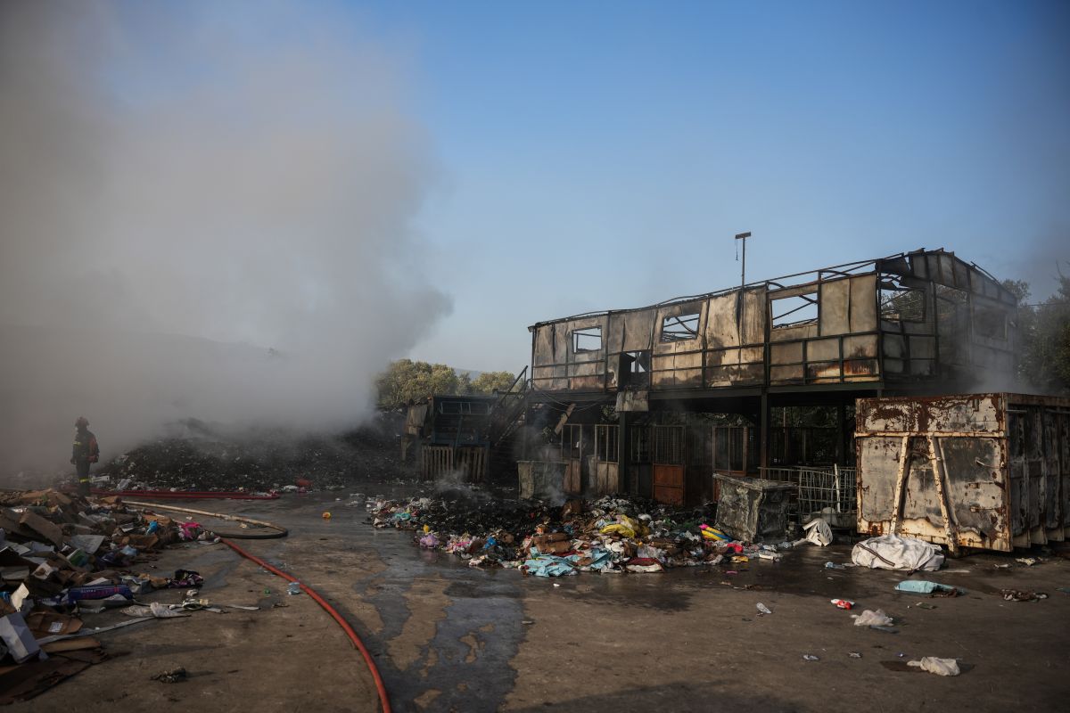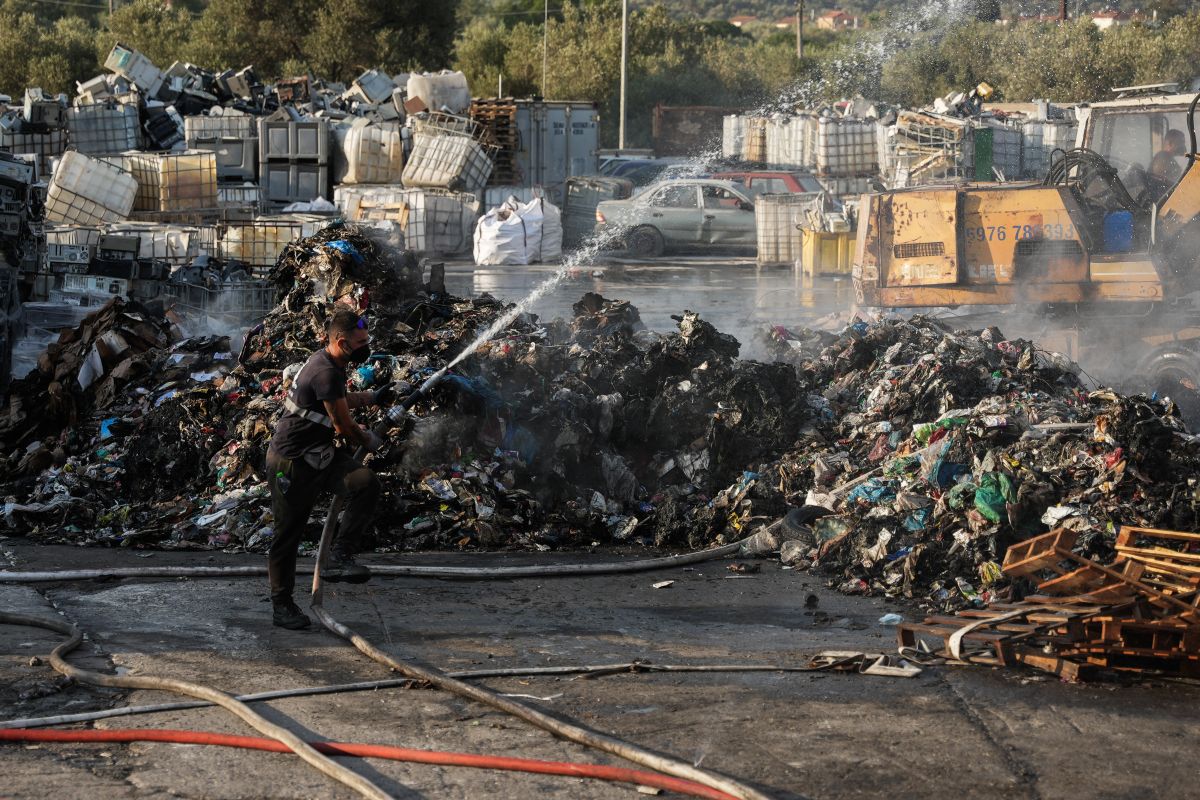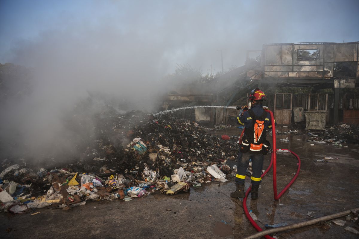 Όπως δήλωσε στο Αθηναϊκό-Μακεδονικό Πρακτορείο Ειδήσεων ο διευθύνων σύμβουλος εταιρείας «Ανακύκλωση Αιγαίου», Παναγιώτης Σινιόρος «κάηκαν ανακυκλώσιμα υλικά προερχόμενα στη συντριπτική τους πλειοψηφία, πάνω από το 80% τους, από μπλε κάδους. Δυστυχώς, υπήρχε αποθηκευμένο υλικό προς ανακύκλωση περισσότερο απ’ ό,τι συνήθως λόγω των δυσκολιών μετακίνησης αυτό το διάστημα φορτηγών από και προς τον Πειραιά και στη συνέχεια προς εργοστάσια ανακύκλωσης. Πάντως, οι τελευταίοι εργάτες έφυγαν χθες, Δευτέρα, μετά την ολοκλήρωσης της διαλογής, μετά τις 6 το απόγευμα και φεύγοντας κατέβρεξαν τα υλικά».
