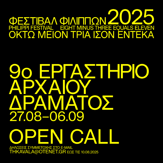 Το 68ο Φεστιβάλ Φιλίππων εντάσσει και φέτος στις συνολικές του παρουσιάσεις έναν πολύ σημαντικό θεσμό, που τα τελευταία χρόνια δίνει μια νέα πνοή στην ευρύτερη περιοχή του Αρχαίου Θεάτρου, το 9ο Εργαστήριο Αρχαίου Δράματος. Ένα ερευνητικό δημιουργικό camp, που διεξάγεται στην περιοχή των Κρηνίδων και τοποθετεί στο κέντρο του την όλη διαδικασία της μάθησης, επιτρέποντας συνολικά ένα νέο ανανεωτικό βλέμμα πάνω στο Αρχαίο Δράμα.