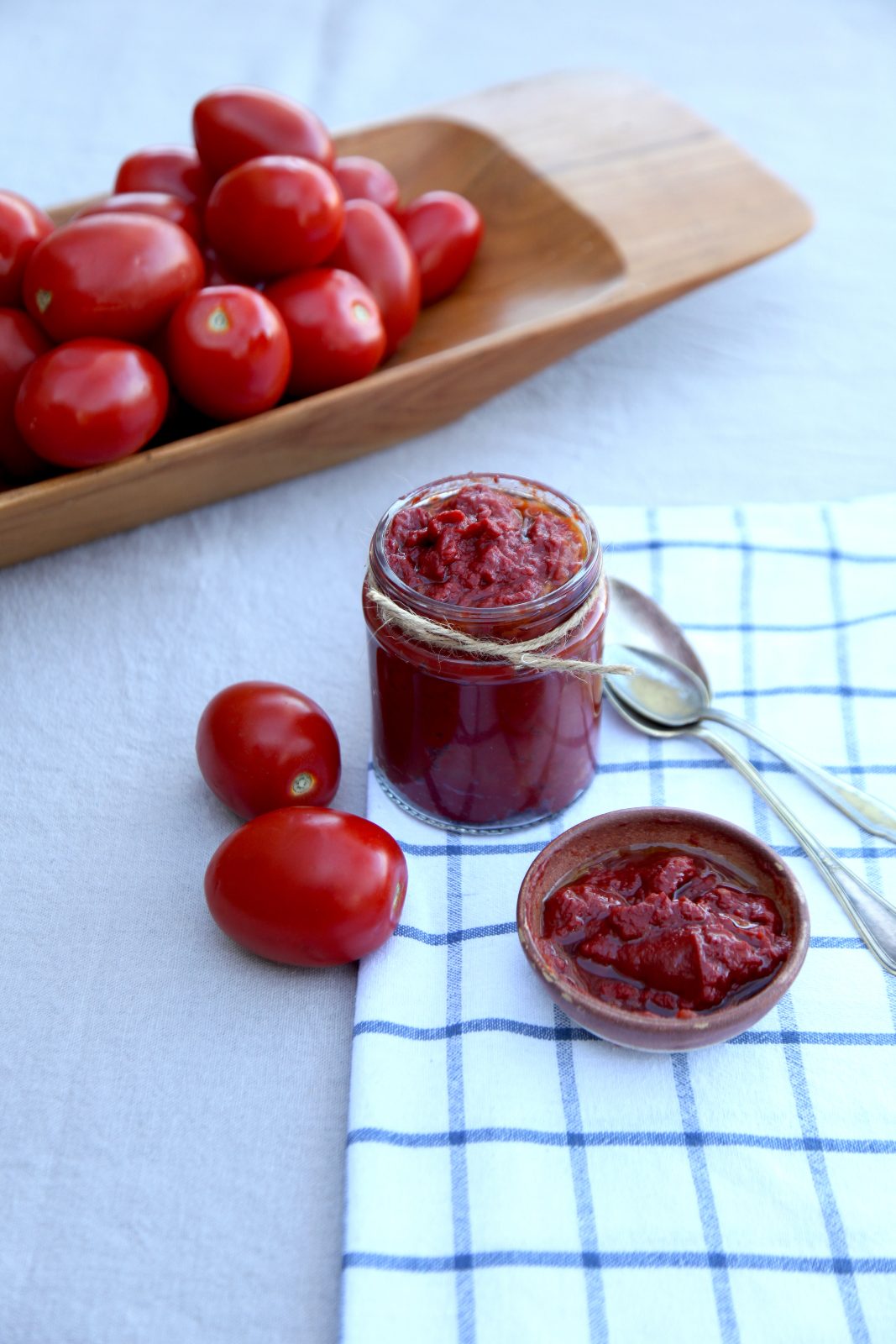 Οι ντομάτες του καλοκαιριού είναι οι πιο νόστιμες όλου του χρόνου. Το άρωμα και η γλύκα τους είναι κομμάτι των αναμνήσεών μας· ένα κομμάτι που πολλές φορές ανακαλούμε όταν δοκιμάζουμε ντοματοσαλάτες που καμία σχέση δεν έχουν με εκείνες των παιδικών μας χρόνων, που ήταν κομμένες από το μποστάνι του παππού και της γιαγιάς. Γι’ αυτό και αν υπάρχει μία ελπίδα σήμερα να απολαύσουμε την αληθινή γεύση της ντομάτας σε ένα πιάτο, χρειάζεται να την επεξεργαστούμε, να τη συμπυκνώσουμε και να την κλείσουμε σε βάζο. Κι όχι σε ένα, αλλά σε τρία διαφορετικά βάζα, σπιτικά, φροντισμένα και έτοιμα να συνοδεύσουν το καθένα με το δικό του μοναδικό τρόπο μαγειρευτά φαγητά, μακαρονάδες ή απλώς μια φέτα ζυμωτό ψωμί.