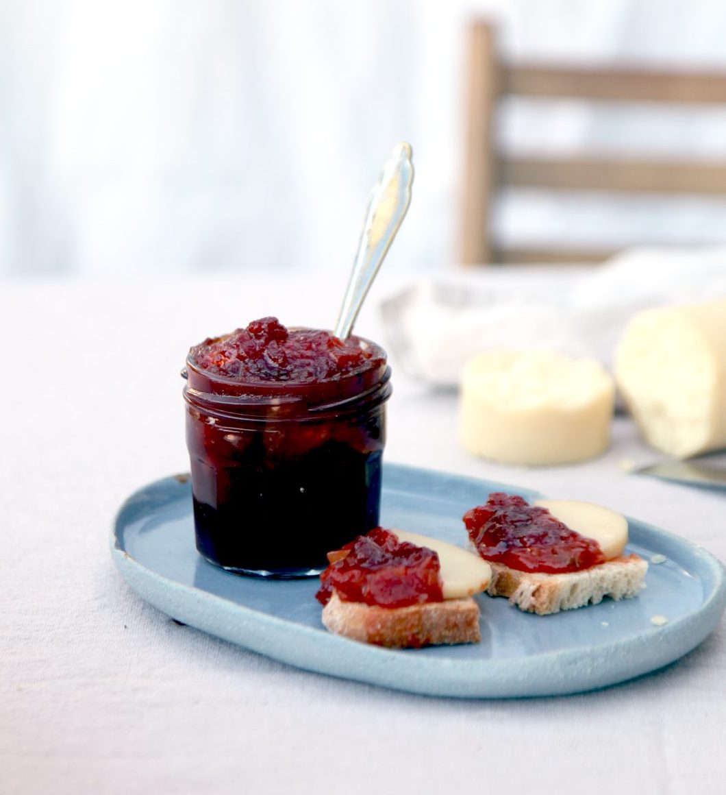 - Σιγοβράζουμε το μείγμα για 25 λεπτά περίπου μέχρι να συμπυκνωθεί και να δέσει. Τέλος το μοιράζουμε σε αποστειρωμένα βάζα τα οποία γεμίζουμε μέχρι πάνω.