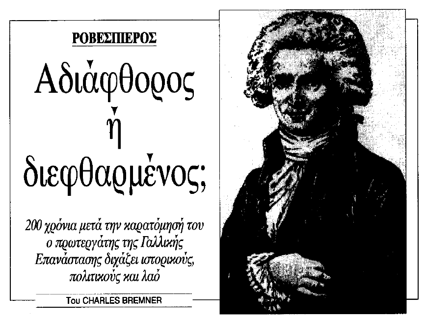 «Οι ιστορικοί που τάσσονται υπέρ του Ροβεσπιέρου υποστηρίζουν ότι ο αρχηγός της Επιτροπής Κοινής Σωτηρίας ήταν στην πραγματικότητα ένας δημοκράτης που αντετίθετο στη θανατική ποινή αλλά που παρασύρθηκε λιγάκι.