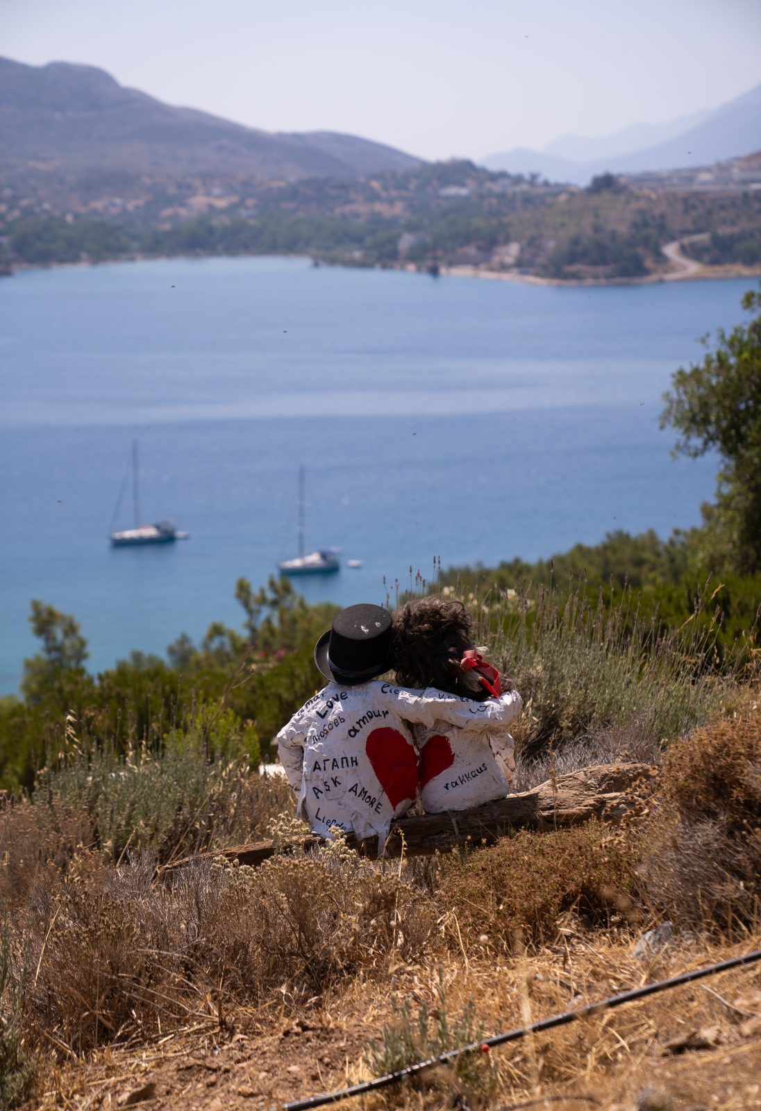 Φτάσαμε εκεί νωρίς το πρωί, για να μπορέσουμε να περιηγηθούμε ανεμπόδιστοι στους χώρους της, είδαμε το παλιό ιταλικό στρατόπεδο -καζέρμα- που υπάρχει στο κέντρο της και πήραμε το όμορφο μονοπάτι που οδηγεί προς την κορυφή του λόφου. Αμέσως παρατηρήσαμε πόσο φροντισμένα και υπέροχα ήταν τα πάντα. Δεξιά και αριστερά, είδαμε κάποια ιδιαίτερα σκιάχτρα, μοναδικά έργα τέχνης που έχει επιμεληθεί η Γεωργία Παπαδοπούλου, ΤΕ νοσηλεύτρια με ειδικότητα στην ψυχιατρική. Σαν μορφές ανθρώπων που στέκονται ανάμεσα σε φυτά και λουλούδια για να αφηγηθούν μικρές ιστορίες από εκείνους που χάθηκαν κάποια στιγμή και μετά ήταν δύσκολο να βρουν λιμάνι.