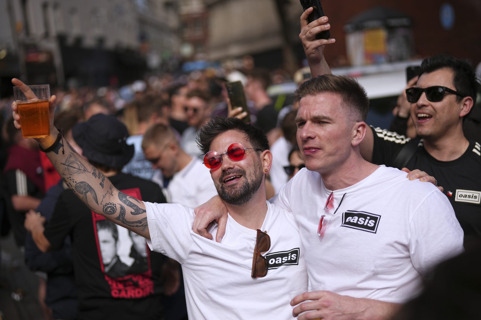 Από τα πληθωρικά στενά του Camden μέχρι την Carnaby Street του περπατημένου Soho και την φινετσάτη Covent Garden, βλέπεις Oasis fans από όλο τον κόσμο, ντυμένους με μπλούζες Oasis, bucket hats, ριχτά parkas, κλασσικά sneaker adidas και οτιδήποτε παραπέμπει στη rock’n’roll κουλτούρα –με γηπεδικά vibes της δεκαετίας του ’90.