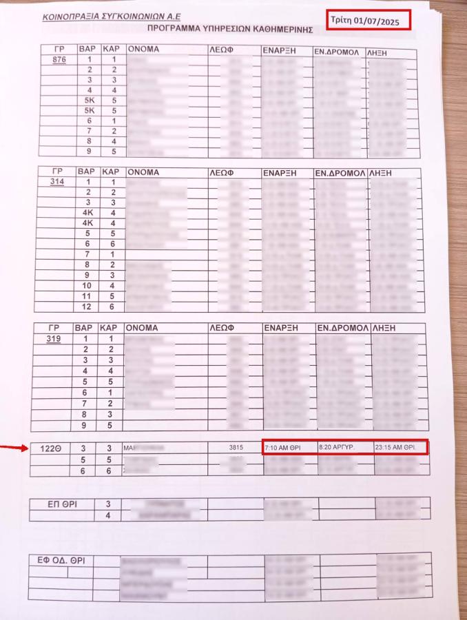 Βάσει του προγράμματος δρομολογίων, η οδηγός που είχε εμπλακεί στο τροχαίο στη Βούλα, είχε εργαστεί την 1η Ιουλίου δεκαέξι ώρες.