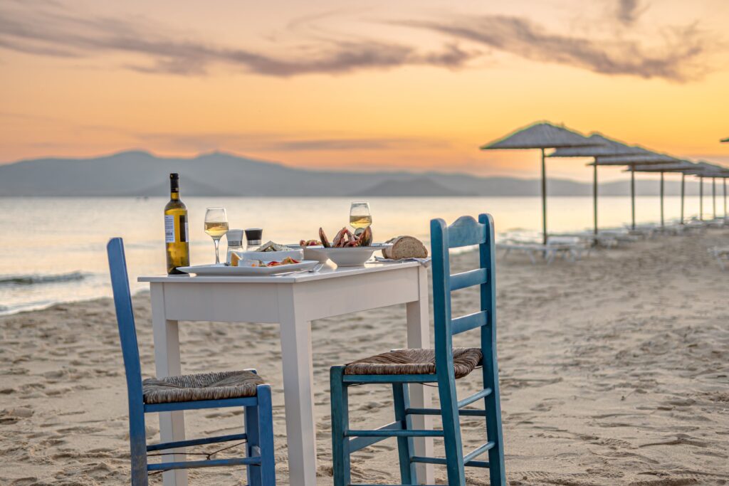 Ένα νησί τόσο πλούσιο σε παραγωγή προϊόντων όσο η Νάξος δεν μπορεί παρά να αποτελεί γαστρονομικό προορισμό για περισσότερο από ένα λόγους. Κι επειδή ακριβώς οι επιλογές εδώ είναι πολλές, ο επισκέπτης μπορεί να περιηγείται στα πανέμορφα χωριά της, δοκιμάζοντας κάθε μέρα κι από κάτι διαφορετικό. Στη δημοφιλέστατη Πλάκα, για παράδειγμα, μετά από το μπάνιο στην απέραντη παραλία, τα τραπεζάκια που βγάζει ο «Νίκος και Μαρία» πλάι στο κύμα αποτελούν βάλσαμο για τη ψυχή.