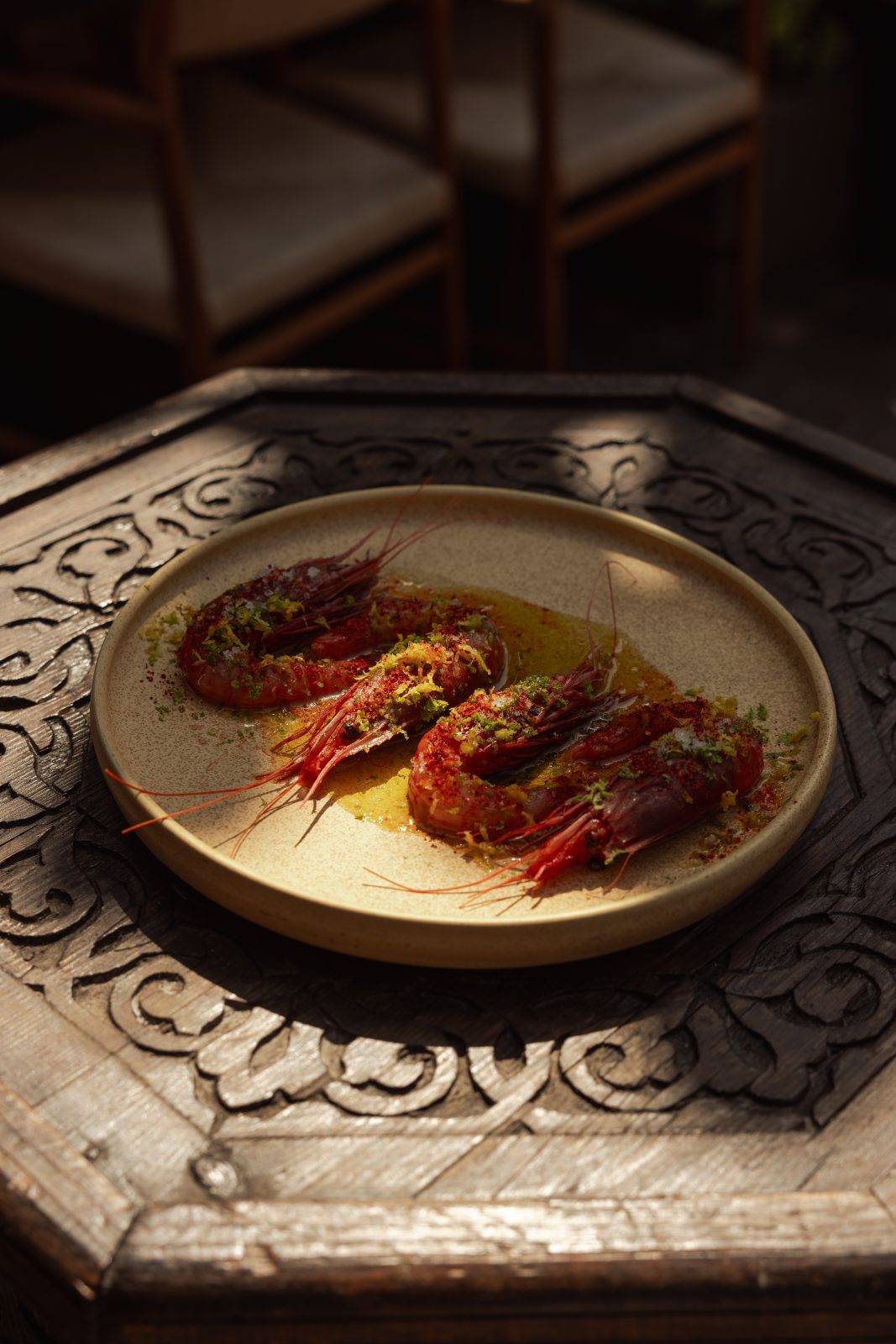 Ξεχωρίζουν πιάτα όπως το σεβίτσε γαρίδας Κοιλάδας, το κυκλαδίτικο καλαμάρι με τσιμιτσούρι, ο καπνιστός ταραμάς με πούδρα χαρουπιού και τα ζυμαρικά με καραβίδες και αβγοτάραχο. Για γλυκό έχουν από τιραμισού με χαρούπι και πανακότα με βερίκοκο μέχρι σορμπέ με γεύσεις ελληνικής προέλευσης.