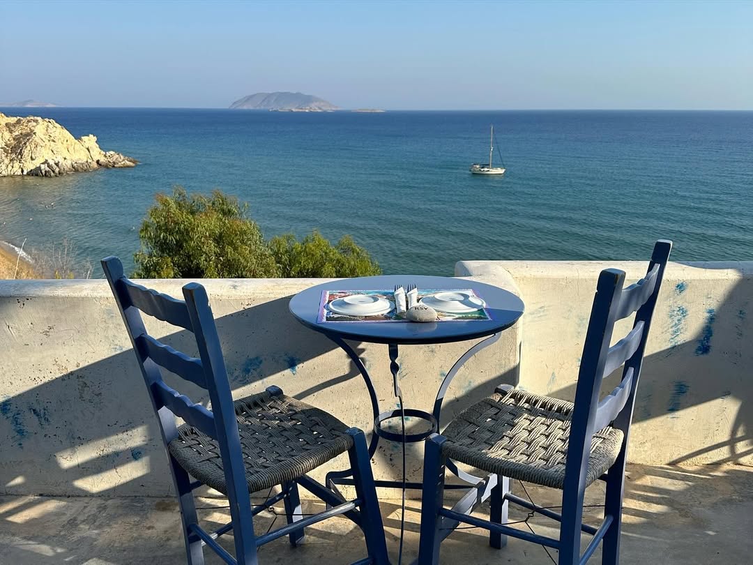 Την κουζίνα έχει αναλάβει από το 2022 ο σεφ Σπύρος Τσελέντης, ο οποίος, παρότι δεν κατάγεται από την Ανάφη, έχει μακροχρόνια σύνδεση μαζί της. Με σπουδές στη γλωσσολογία και επαγγελματική εμπειρία στη Βιέννη, επέλεξε συνειδητά να επιστρέψει στην Ελλάδα για να αναδείξει τη νησιώτικη γαστρονομία μέσα από ένα σύγχρονο, αλλά συγκρατημένο πρίσμα. Το μενού διαμορφώνεται καθημερινά ανάλογα με τα διαθέσιμα υλικά. Η προμήθεια θαλασσινών εξαρτάται από το τι θα φέρουν οι ψαράδες το πρωί, ενώ τα περισσότερα λαχανικά, αβγά και τυριά είναι τοπικής παραγωγής. Ποσοστό άνω του 90% των πρώτων υλών προέρχεται από την ίδια την Ανάφη, κάτι σπάνιο για νησί με μικρή αγροτική δραστηριότητα. Προορισμός για foodies, με πιστούς πελάτες όπως ο σκηνοθέτης Γιώργος Λάνθιμος ή ο χορογράφος Δημήτρης Παπαϊωάννου – οπότε, μην εκπλαγείτε αν τους δείτε στο διπλανό τραπέζι.