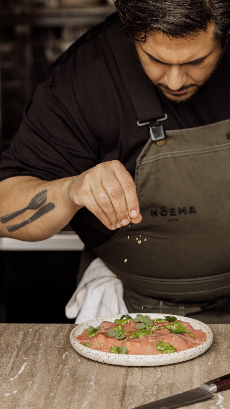 Έπειτα από αρκετά χρόνια συνεργασίας με διάφορες διάσημες κουζίνες της Μυκόνου, ο Αθηναγόρας Κωστάκος φαίνεται ότι βρήκε «nōema» στο κέντρο της Χώρας καθώς η φετινή αποτελεί την πέμπτη σεζόν λειτουργίας του φερώνυμου εστιατορίου. Στεγασμένο σε έναν πρώην υπαίθριο κινηματογράφο και σχεδιασμένο ως σύγχρονη αυλή με κυκλαδίτικο χαρακτήρα, το Nōema προσφέρει μια ολιστική εμπειρία γεύσης, μουσικής και φιλοξενίας. Στην κουζίνα, τα πάντα έχουν ως βάση την εποχικότητα και τις γνήσιες πρώτες ύλες, με έμφαση στο μοίρασμα.