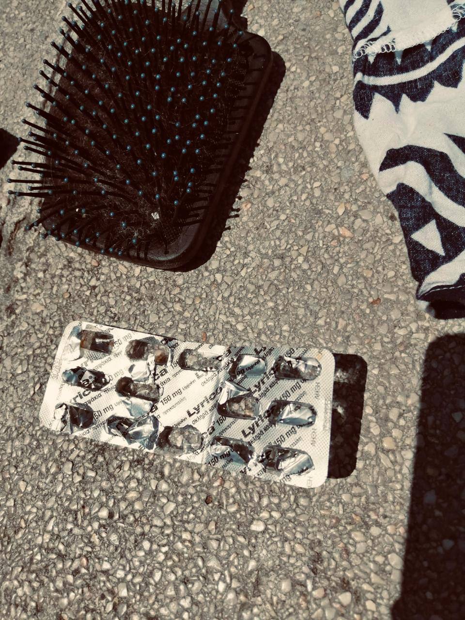 Επίσης, στη σακούλα εντοπίστηκε και μία άδεια καρτέλα χαπιών Lyrica. Το συγκεκριμένο φάρμακο ενδείκνυται για περιπτώσεις αγχώδους διαταραχής και επιληπτικών κρίσεων.