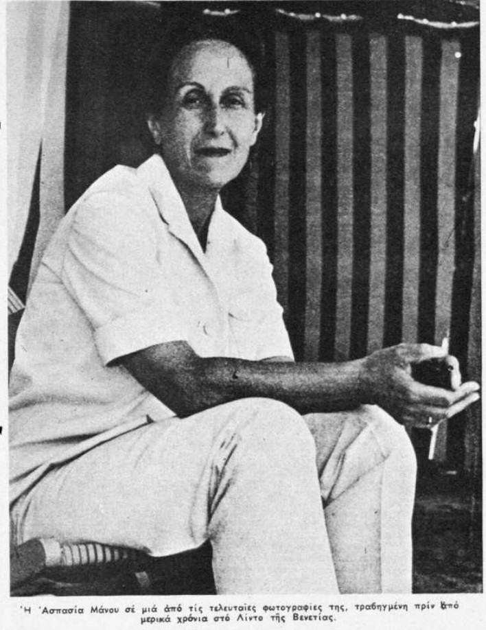 «Σήμερα γίνεται στην Βενετία η κηδεία -κατά το ελληνορθόδοξο δόγμα- της Ασπασίας Μάνου, μοργανατικής συζύγου του άτυχου βασιλέα Αλεξάνδρου της Ελλάδος.