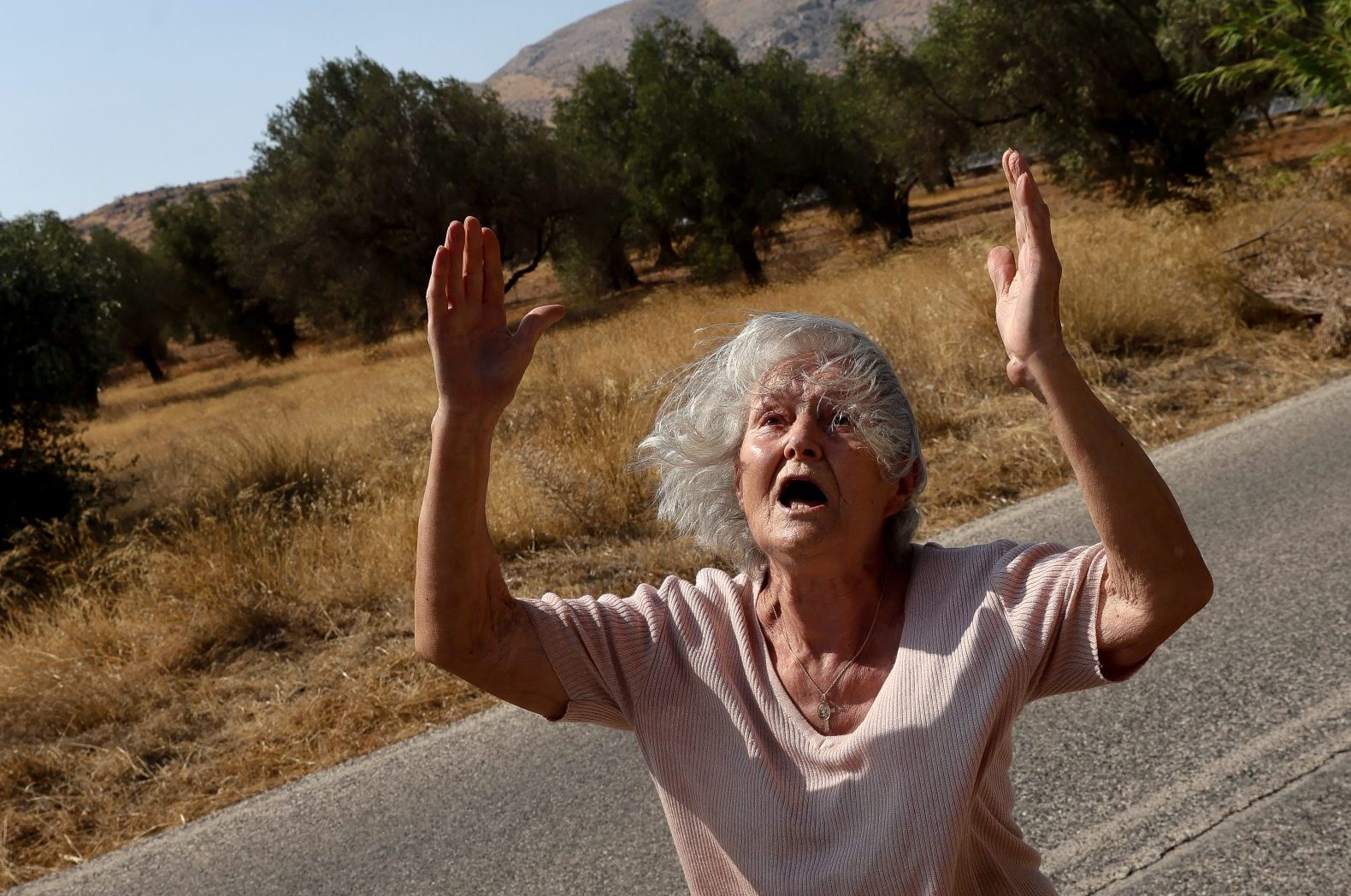 Ο φακός τη συνέλαβε να κοιτάζει με απόγνωση το πύρινο μέτωπο και να φωνάζει: «πάει το δασάκι μου, πάει, τελευταία φορά που σε βλέπω». Πολλοί άλλοι κάτοικοι παρέμειναν για να προστατέψουν τα σπίτια τους όπως μπορούσαν με αποτέλεσμα κάποιοι από αυτούς να κινδυνέψουν.